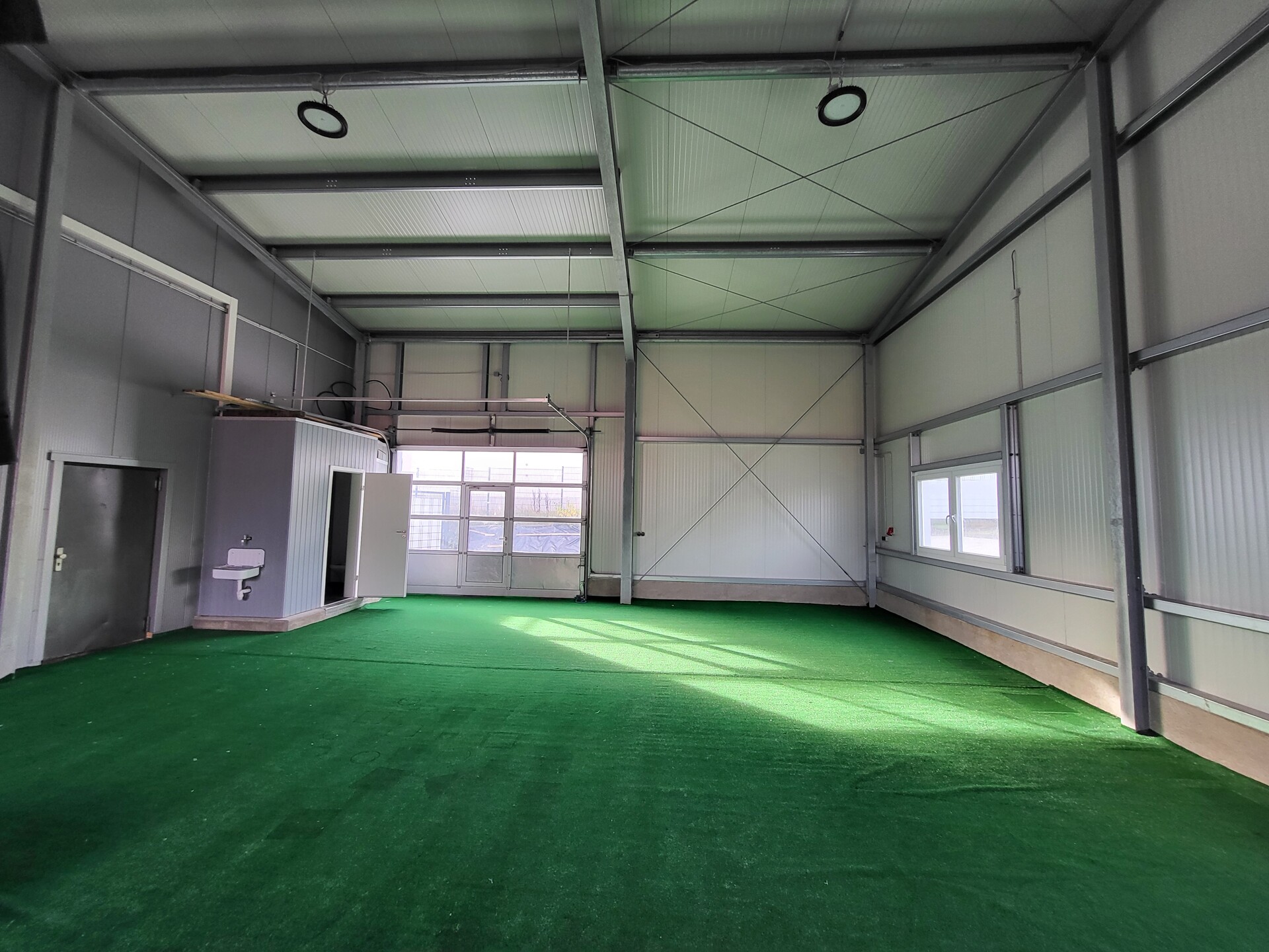 Die Einfahrtshöhe der beiden Tore liegt bei ca. 3,60m. Zudem gibt es noch zwei Türen, durch die in die Halle gelangt werden kann. Zwei große Fenster lassen viel Tageslicht reinkommen. Ein WC und ein Wasseranschluss sind auch vorhanden.