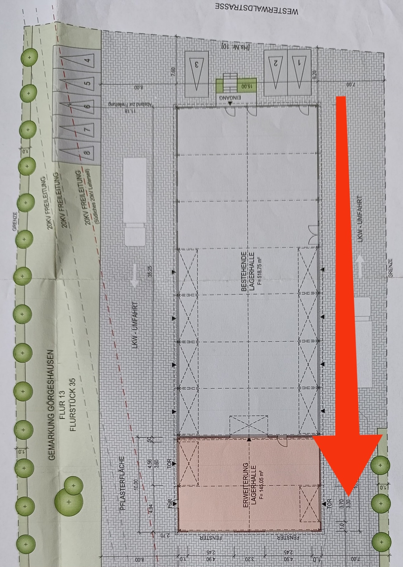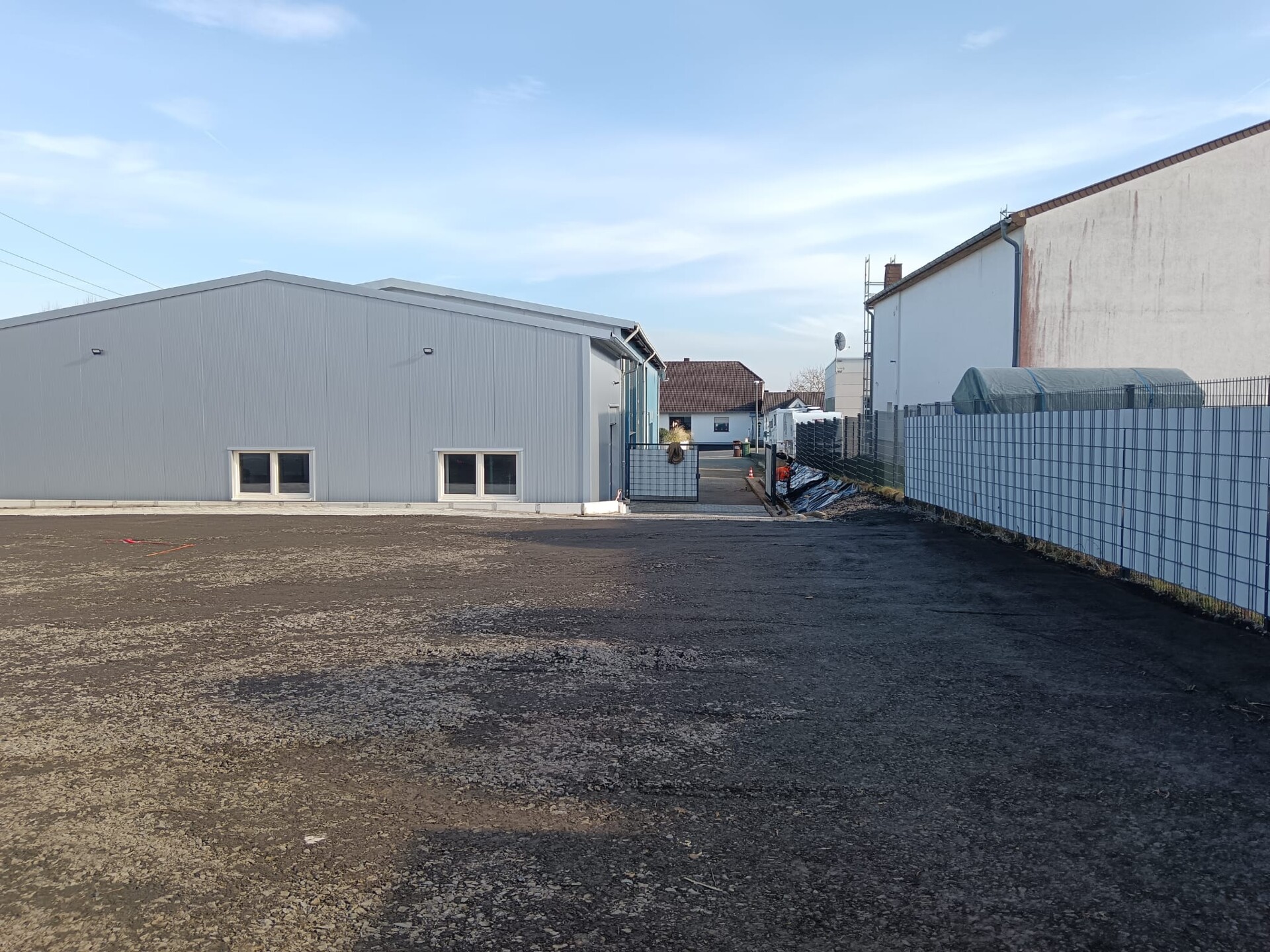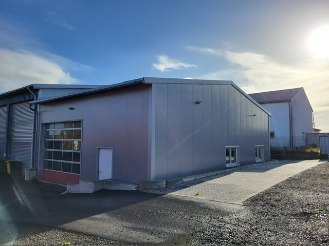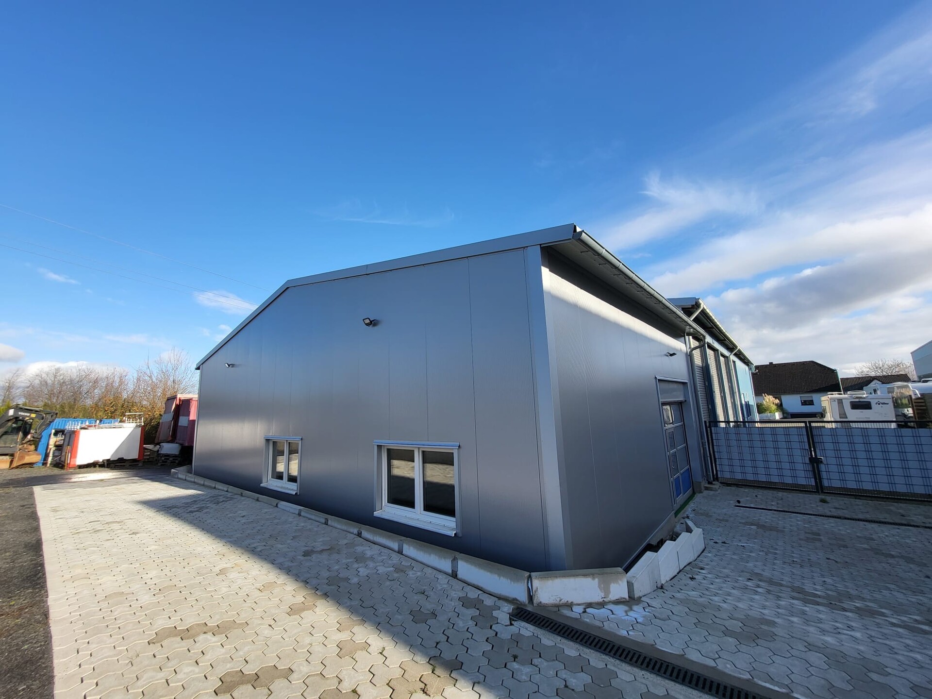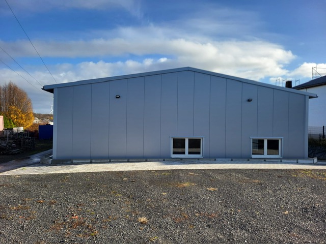 Die ca. 150 m² große, gedämmte Halle befindet sich im hinteren Teil einer eingezäunten Gewerbeeinheit im Gewerbemischgebiet in Görgeshausen und wurde 2023/2024 errichtet.