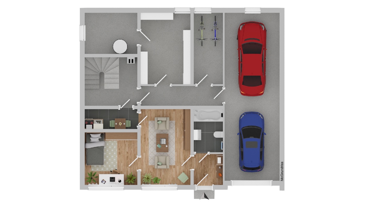 -Doppelgarage über die gesamte Tiefe des Hauses, 2 PKW hintereinander,