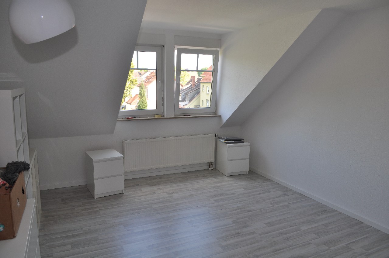 Die Wohnung liegt im Dachgeschoss eines Mehrfamilienhauses mit insgesamt 6 Wohneinheiten. Die ca. 60 m² Wohnfläche teilt sich auf in ein Wohnzimmer mit Zugang zu einer Loggia, ein Schlafzimmer, eine Küche, ein Tageslichtbad mit Dusche und Badewanne, einem Abstellraum und Flur. Die vorhandene Einbauküche wird mitvermietet. Ein Kellerraum und ein PKW-Stellplatz am Haus gehören ebenfalls mit zu der Wohnung.
