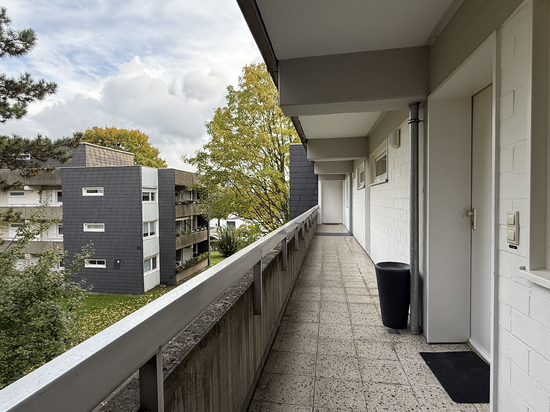 Die Wohnung empfängt Sie mit einem praktischen Eingangsbereich, von dem Sie sowohl die Küche als auch das geräumige Wohnzimmer erreichen. Vom Wohnzimmer gelangen Sie auf den Balkon, von dem Sie einen schönen Blick in die Baumkronen genießen können. Hinter dem Wohnzimmer befinden sich über einen kleinen Flur erreichbar das Schlafzimmer sowie das Duschbad mit Waschmaschinenanschluss. Das Schlafzimmer verfügt ebenfalls über einen Zugang zum Balkon.