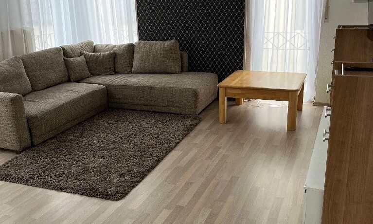 Herzstück ist das helle Wohn-Esszimmer, das mit modernem Laminat ausgelegt ist und viel Raum für Gestaltung bietet.