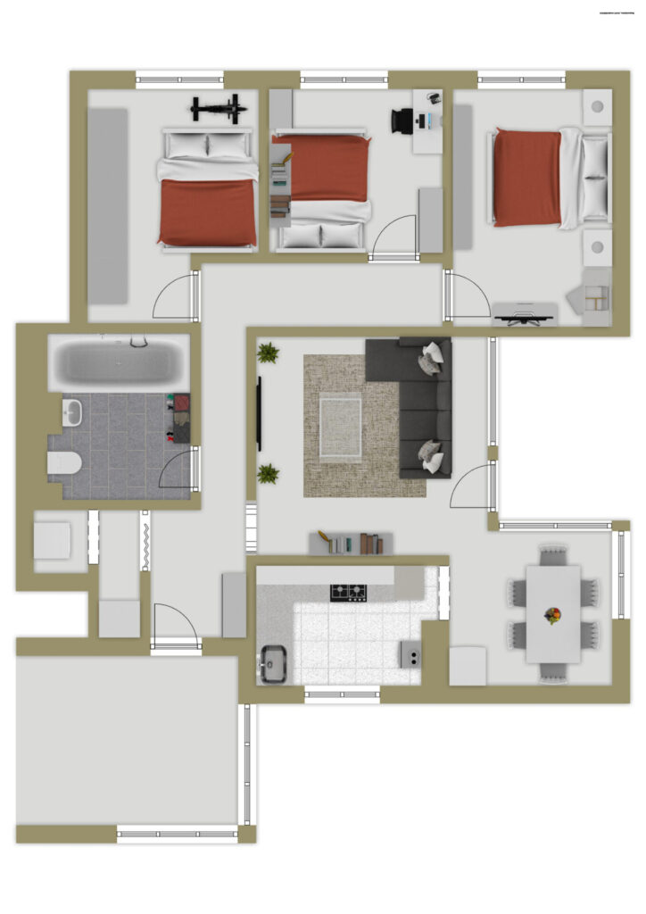 Die drei Schlafzimmer eröffnen vielfältige Nutzungsmöglichkeiten: Ob Familienzimmer, Homeoffice oder kreativer Rückzugsort – jedes Zimmer hat seinen eigenen Charakter und kann individuell gestaltet werden.