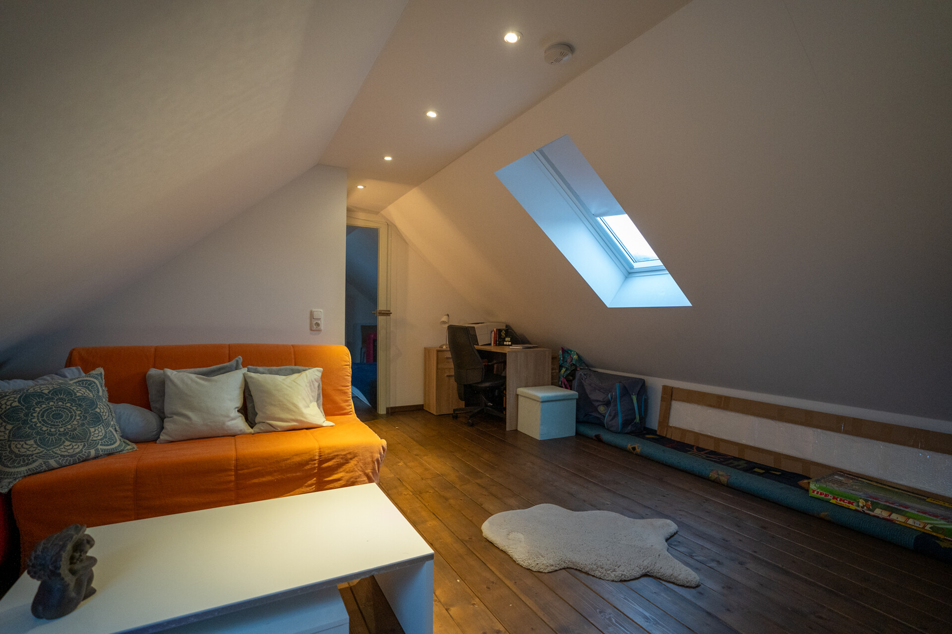 Auf einem Grundstück von ca. 543 m² erstreckt sich eine Wohnfläche von ca. 143 m², die viele Gestaltungs- und Nutzungsmöglichkeiten bietet. Das Haus verfügt über insgesamt 4 Zimmer, darunter 3 geräumige Schlafzimmer. Besonders erwähnenswert ist das nachträglich ausgebaute Dachgeschoss, das zwei zusätzliche Zimmer bietet und damit den Wohnraum erheblich erweitert, obwohl diese Fläche nicht in der angegebenen Gesamtwohnfläche enthalten ist.