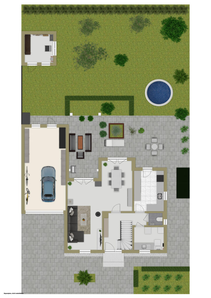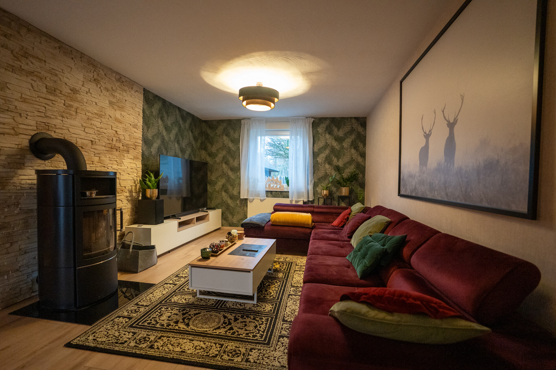 Die Ausstattung umfasst zudem ein Tageslicht Badezimmer und einen gemütlichen Kamin im Wohnbereich, der für wohlige Wärme und entspannte Abende sorgt. Von der großzügigen Terrasse aus genießen Sie den Blick auf den gepflegten Garten, der ausreichend Platz für Freizeitaktivitäten und Erholung bietet. Eine praktische Garage rundet das Angebot ab.