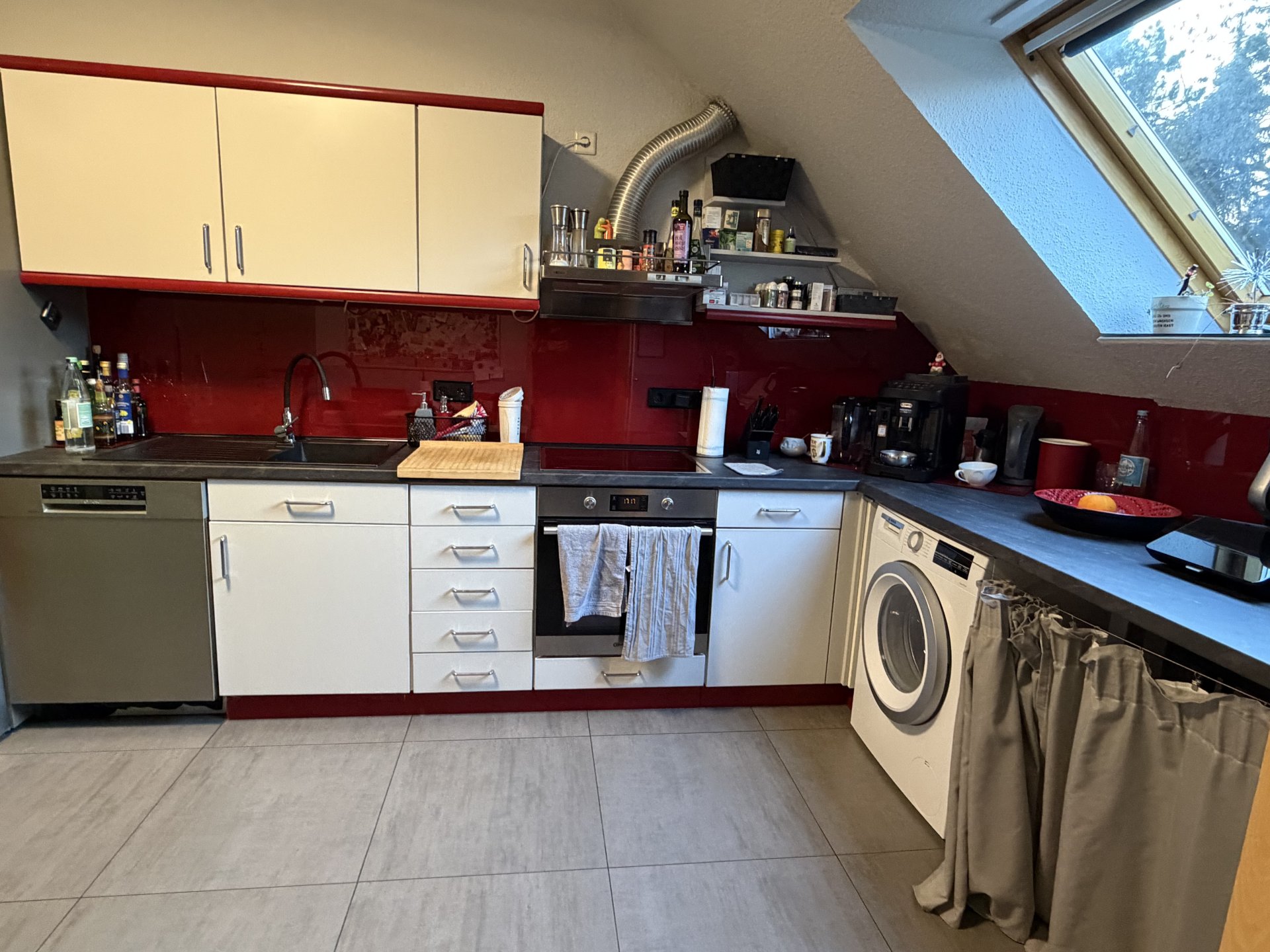 ° Separate Essküche mit Einbauküche (in der Miete enthalten) sowie Anschlüssen für Waschmaschine und Geschirrspüler, Essecke in der Küche möglich