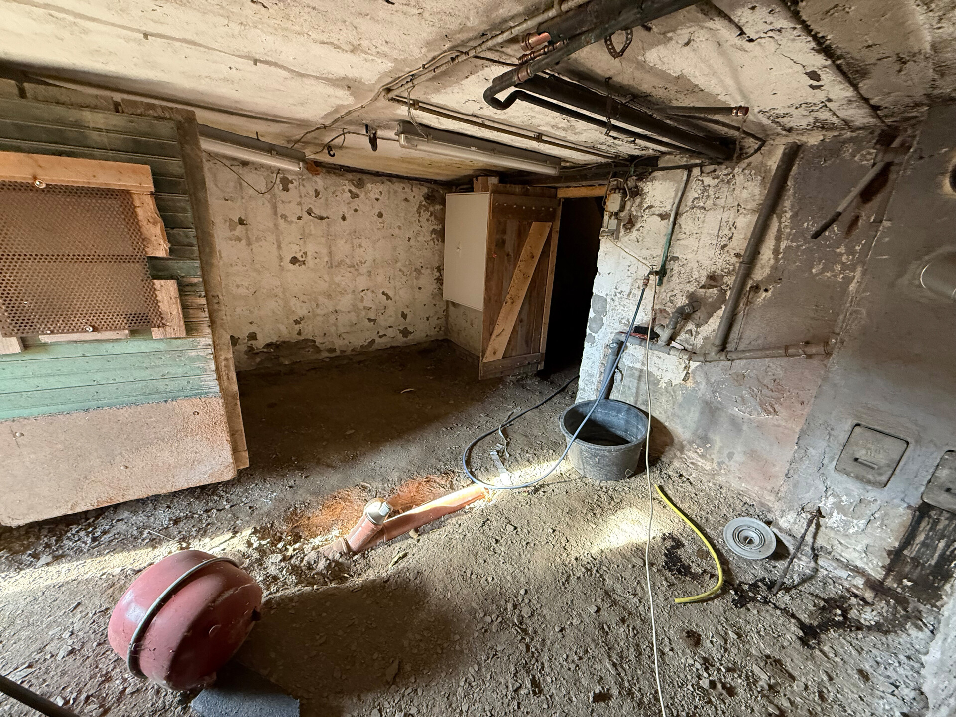 Bei dieser Immobilie handelt es sich um ein ehemaliges Bauernhaus aus schätzungsweise 1919, das seit 2022 bereits im Außenbereich saniert wurde. Im Zuge der Sanierung wurden die Fassade, das Dach sowie die Fenster erneuert. Im linken Gebäudebereich befindet sich eine kleine, bezugsbereite Wohnung, bestehend aus Küche, Wohnzimmer, Duschbad und Schlafzimmer. Der Innenbereich des rechten Gebäudeteils befindet sich im entkernten Zustand. Sämtliche Innenausbauten wurden entfernt, das Gebäude präsentiert sich im Rohbauzustand mit freigelegten Wänden, Decken, Böden. Erste Arbeiten an der Elektrik wurden bereits begonnen, jedoch noch nicht abgeschlossen. Die Elektrioverteilung im OG wurde komplett verlegt. Es bietet vielfältige Ausbaureserven zur individuellen Gestaltung von zusätzlichem Wohnraum. Ursprünglich war der Ausbau zu einem Mehrfamilienhaus mit 2 weiteren Einheiten vorgesehen, wodurch sich das Objekt besonders für handwerklich versierte Käufer oder Investoren eignet, die den verbleibenden Sanierungsaufwand bewusst einkalkulieren. Nach Fertigstellung könnte eine Wohnfläche von schätzungsweise 350 m² erzielt werden.