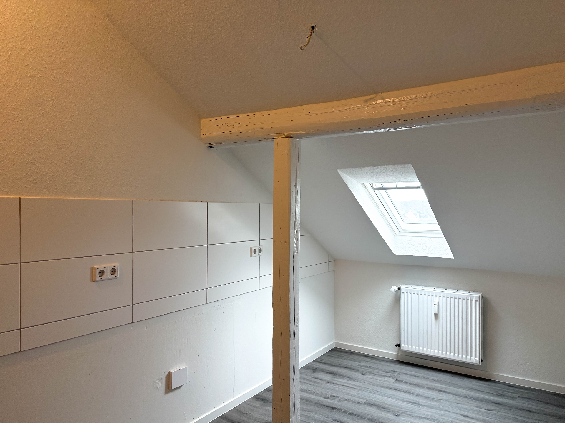 Im Dachgeschoss eines stilvollen Mehrfamilienhauses befindet sich diese individuelle Mietwohnung, welche mit einem modernen Grundriss überzeugt. Der großzügige Wohn-/Essbereich mit der offenen Küche ist das Herzstück der Wohnung und strahlt mit den freistehenden Holzbalken einen besonderen Wohlfühlcharakter aus.