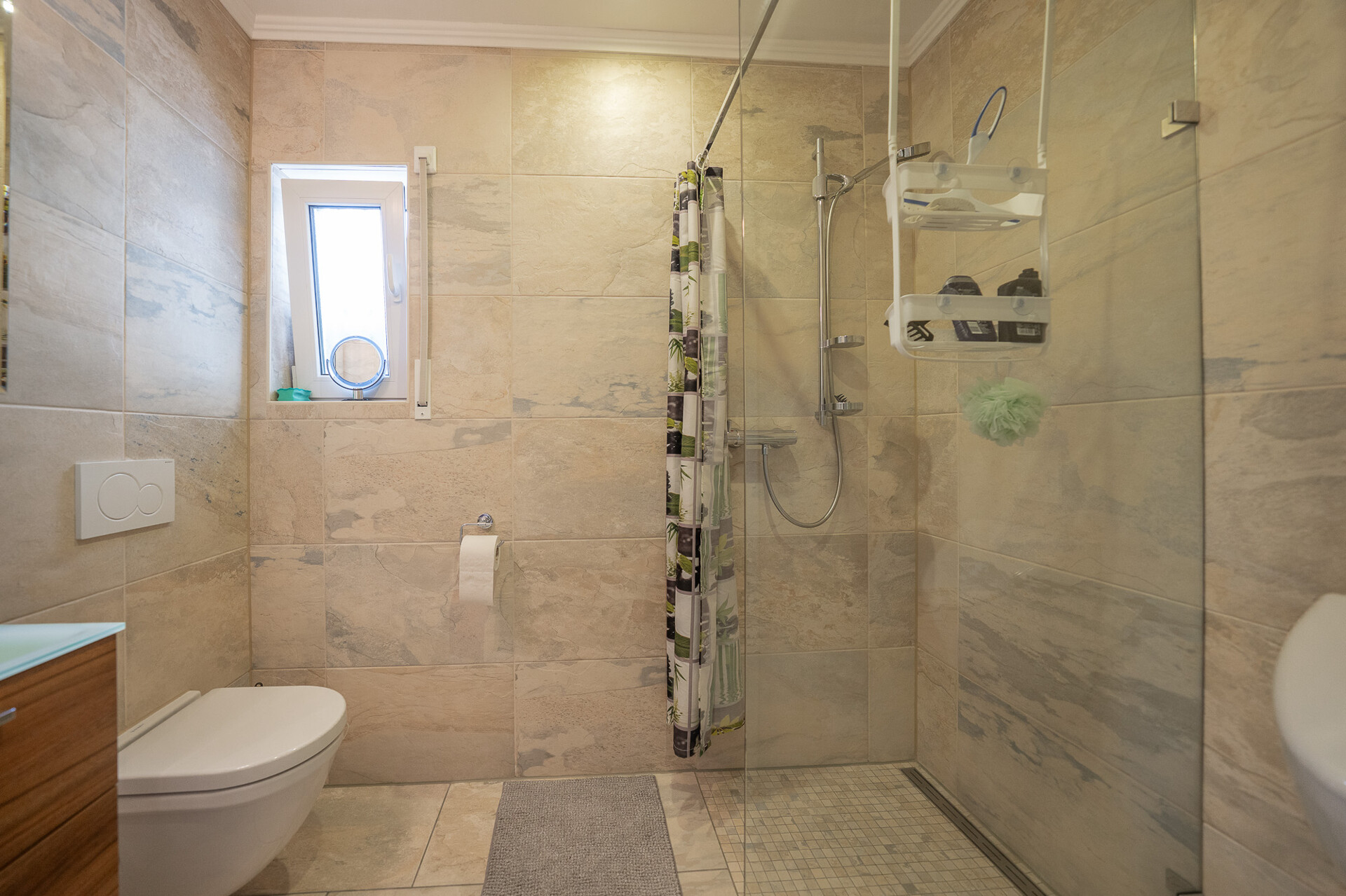 – Schlafzimmer mit Zugang zum Garten sowie direktem Zugang zum Tageslichtbad en Suite mit ebenerdiger Dusche – für privaten Komfort und kurze
