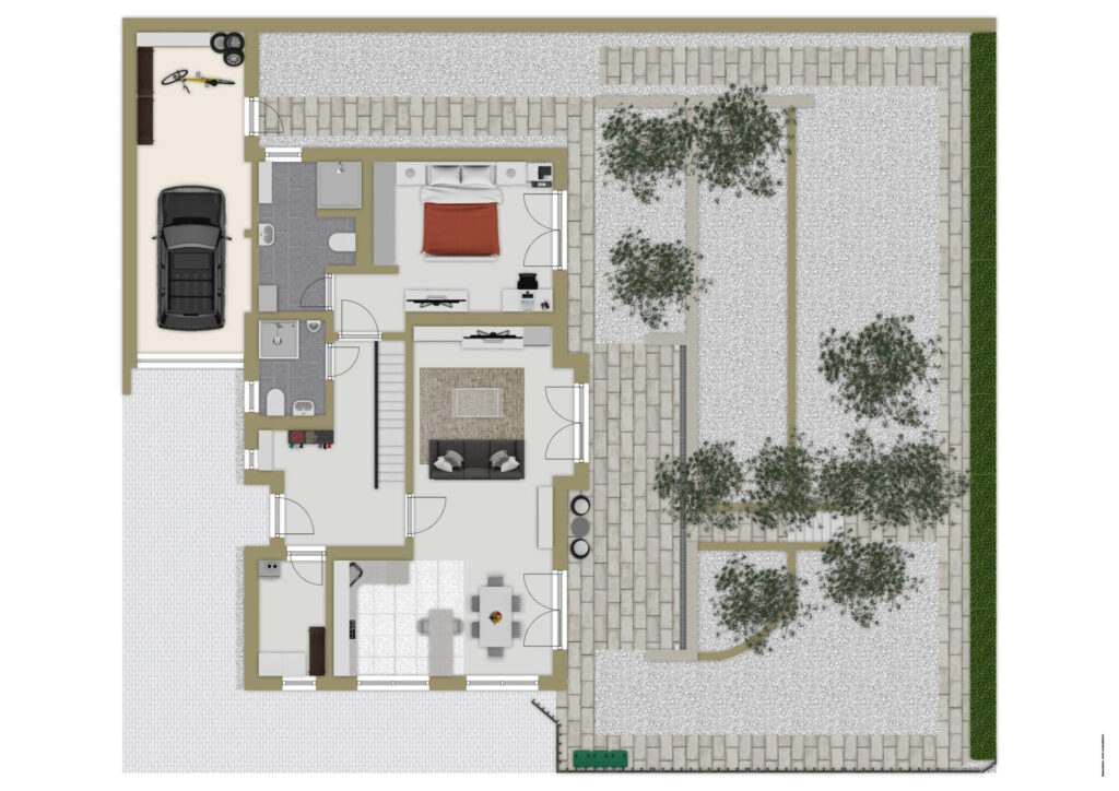 – Separate Stellplätze vor dem Haus mit direktem Zugang zum Garten – praktisch für Besucher oder den Zweitwagen