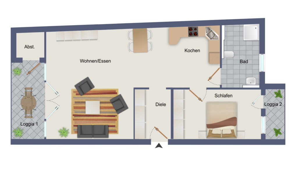 aber alternativ auch gut vermietbare Wohnung mit langfristig erzielbaren soliden Mieteinnahmen