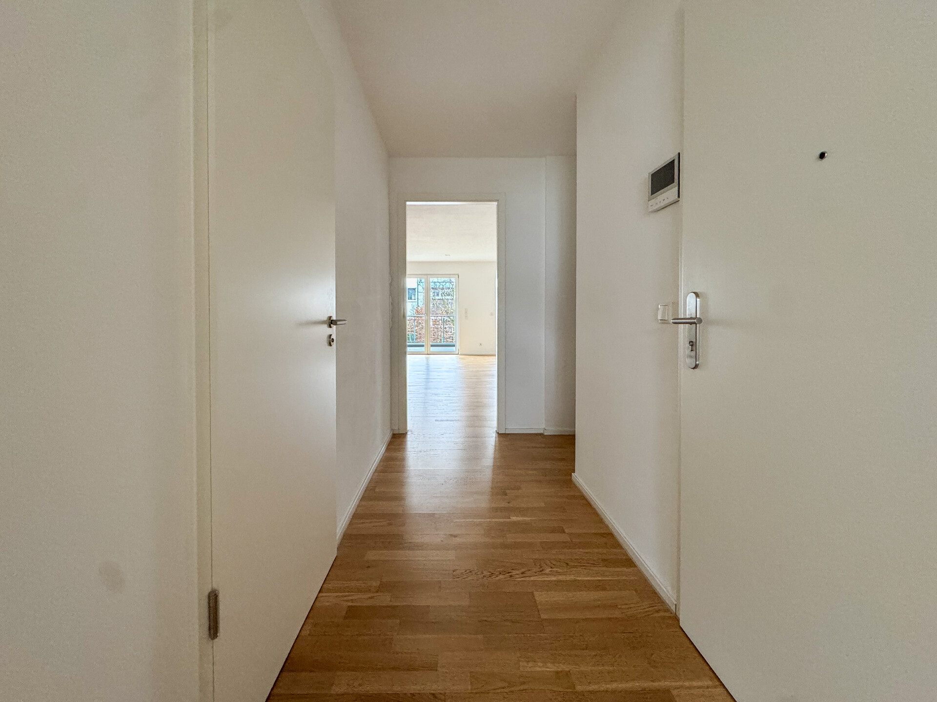 Das Schlafzimmer ist ruhig gelegen und bietet ausreichend Stellfläche für Möbel. Das moderne Badezimmer ist barrierefrei gestaltet und komfortabel ausgestattet. Ein praktischer Flur verbindet alle Räume und sorgt für eine angenehme Wohnstruktur.