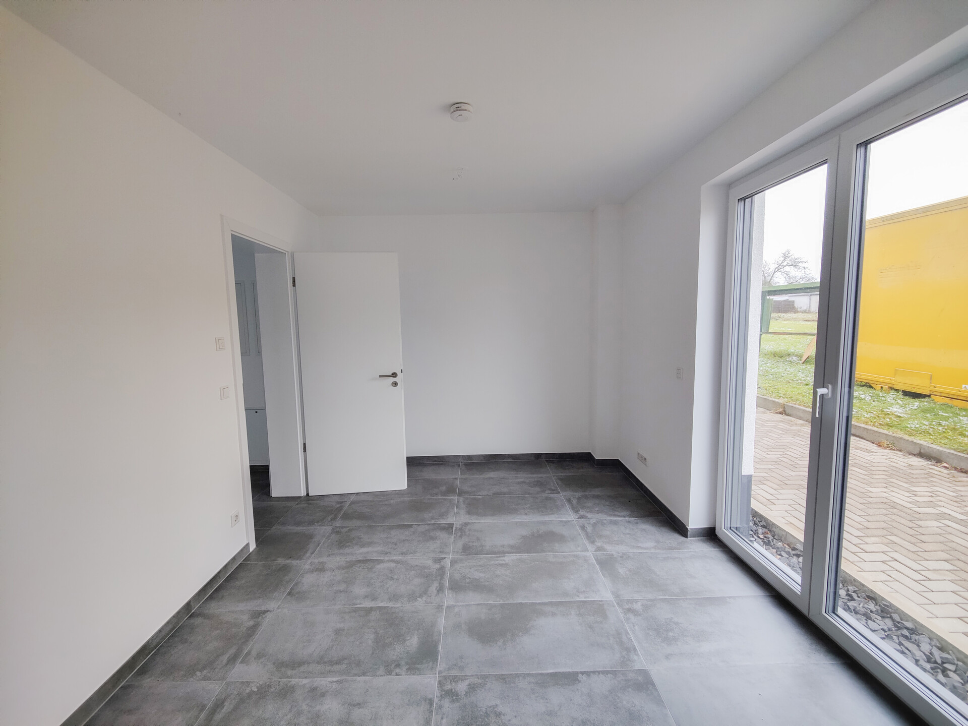 Diese neuwertige Eigentumswohnung befindet sich im Erdgeschoss eines 5-Parteienhauses, welches ca. 2021 in massiver Bauweise im Bauhausstil errichtet wurde. Das Gebäude ist nicht unterkellert. Die Wohnung verfügt jedoch über einen eigenen Abstell-/Waschraum. Die Wohnfläche ist barrierefrei, sodass diese besonders für Senioren ideale Voraussetzungen bietet, bis ins hohe Alter darin wohnen bleiben zu können. Über die geräumige Diele gelangt man zu den jeweiligen Zimmern. Das Wohnzimmer verfügt über eine offene Küche und Zugang zur eigenen Terrasse. Von dieser gelangt man weiter in den separaten Wasch- bzw. Abstellraum. Neben dem Wohnzimmer sind noch 2 weitere Zimmer, ein möbliertes Bad und ein Gäste-WC vorhanden.