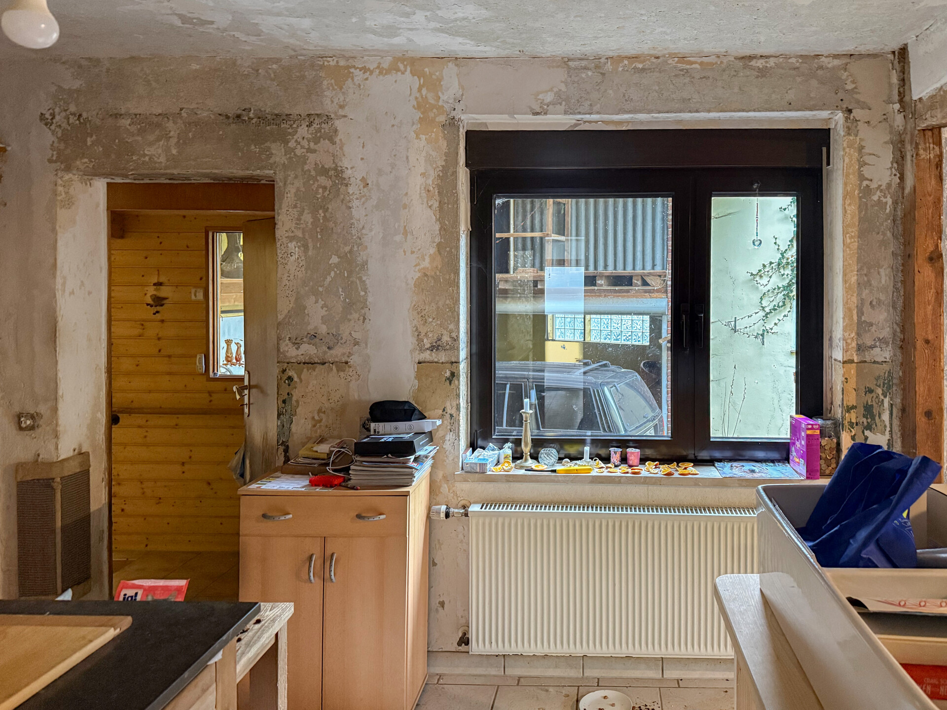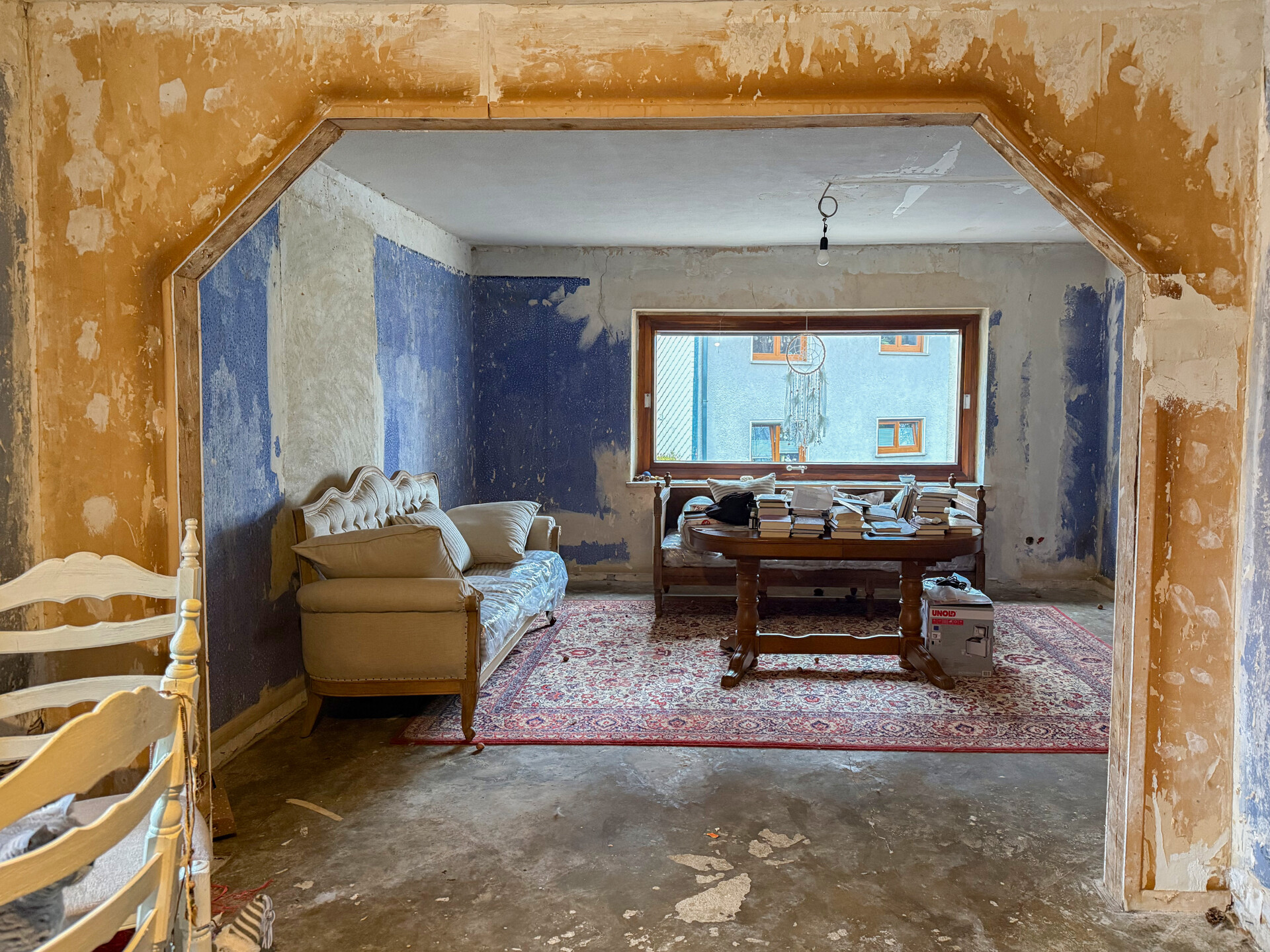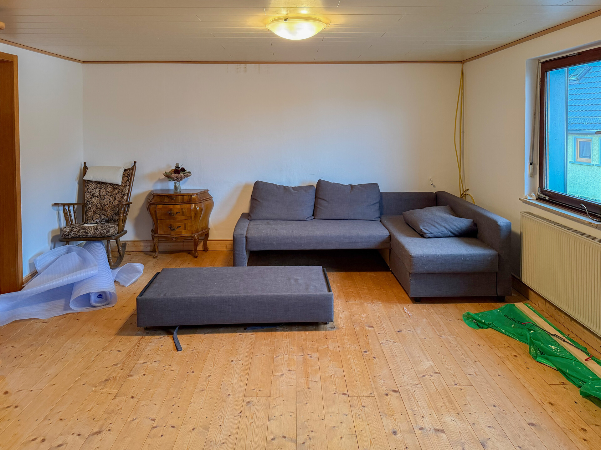 Der Wohnbereich erstreckt sich über 2 Etagen. Im Erdgeschoss befinden sich die Küche sowie ein geräumiger Wohn-/Essbereich, die zurzeit vom Eigentümer neu gestaltet werden. Ergänzt wird diese Etage durch einen Vorratsraum, ein großes Bad sowie ein Zimmer, welches sich ideal als Büro eignet. Das Obergeschoss wurde bereits umfangreich renoviert. So wurden z.B. ein neuer Dielenboden verlegt und die Wände mit einem Kalkputz versehen. Im Obergeschoss befinden sich insgesamt 5 Zimmer und ein Balkon mit Südausrichtung. Der Dachboden ist über eine Treppe erreichbar und noch ausbaufähig.