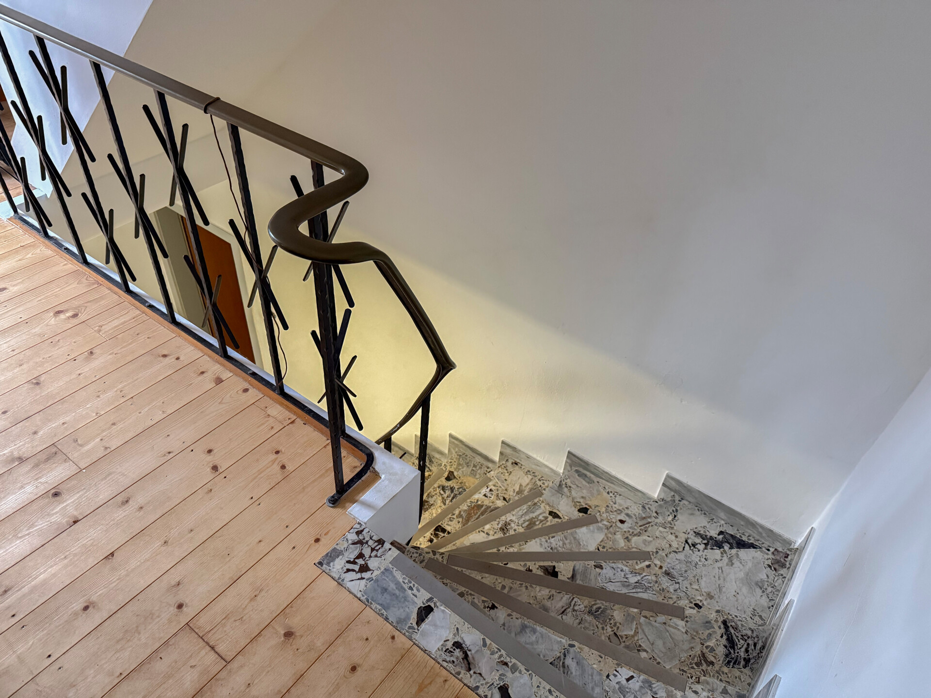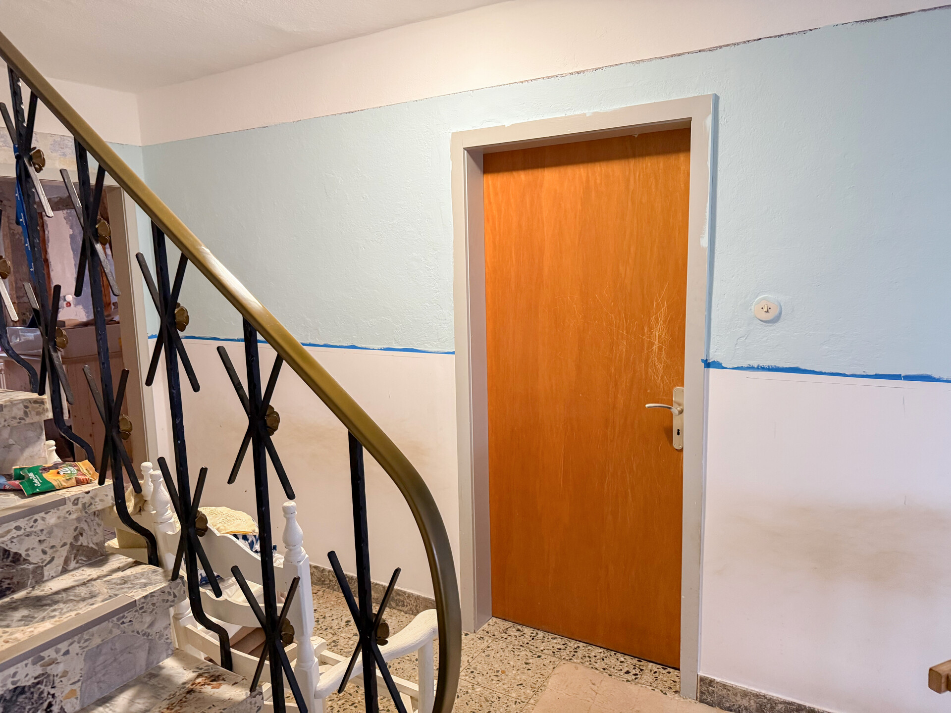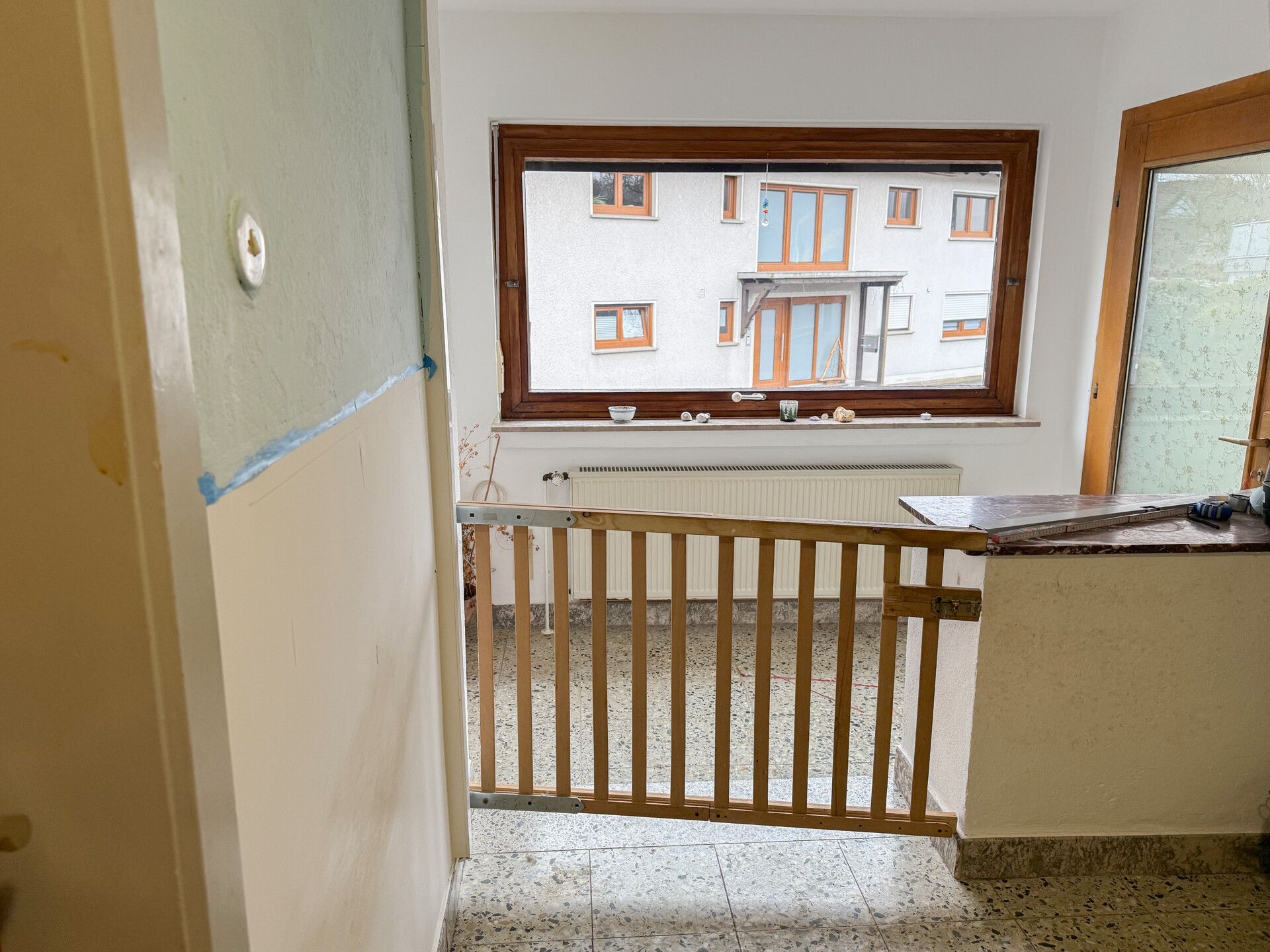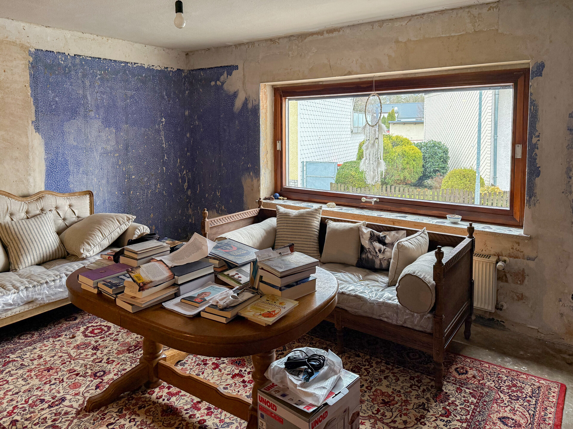 Der Wohnbereich erstreckt sich über 2 Etagen. Im Erdgeschoss befinden sich die Küche sowie ein geräumiger Wohn-/Essbereich, die zurzeit vom Eigentümer neu gestaltet werden. Ergänzt wird diese Etage durch einen Vorratsraum, ein großes Bad sowie ein Zimmer, welches sich ideal als Büro eignet. Das Obergeschoss wurde bereits umfangreich renoviert. So wurden z.B. ein neuer Dielenboden verlegt und die Wände mit einem Kalkputz versehen. Im Obergeschoss befinden sich insgesamt 5 Zimmer und ein Balkon mit Südausrichtung. Der Dachboden ist über eine Treppe erreichbar und noch ausbaufähig.