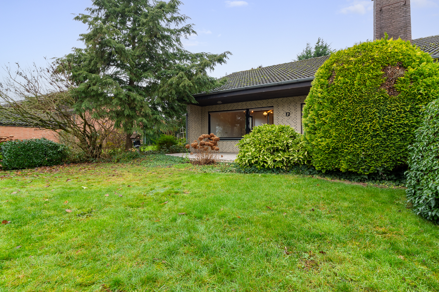 Über ein paar Treppenstufen gelangen Sie dann in den zweiten Teil des Zimmers. Hier ist ausreichend Platz für eine gemütliche Sofalandschaft und einen Esstisch für Familie und Freunde. Vom Wohn-/Esszimmer aus betreten Sie die große Hauptterrasse, die sich als echtes Highlight präsentiert: Durch die südöstliche Ausrichtung genießen Sie hier Sonne vom Morgen bis in den Nachmittag hinein. Ein Outdoor-Kamin sorgt hier für stimmungsvolle Abende im Freien und lädt dazu ein, den Garten auch an kühleren Tagen zu genießen. Der Blick fällt dabei auf den schön eingewachsenen Garten mit Rasenflächen und Sträuchern, der auf dem rund 754 m² großen Grundstück viel Platz zum Entspannen, Spielen und Gärtnern bietet.
