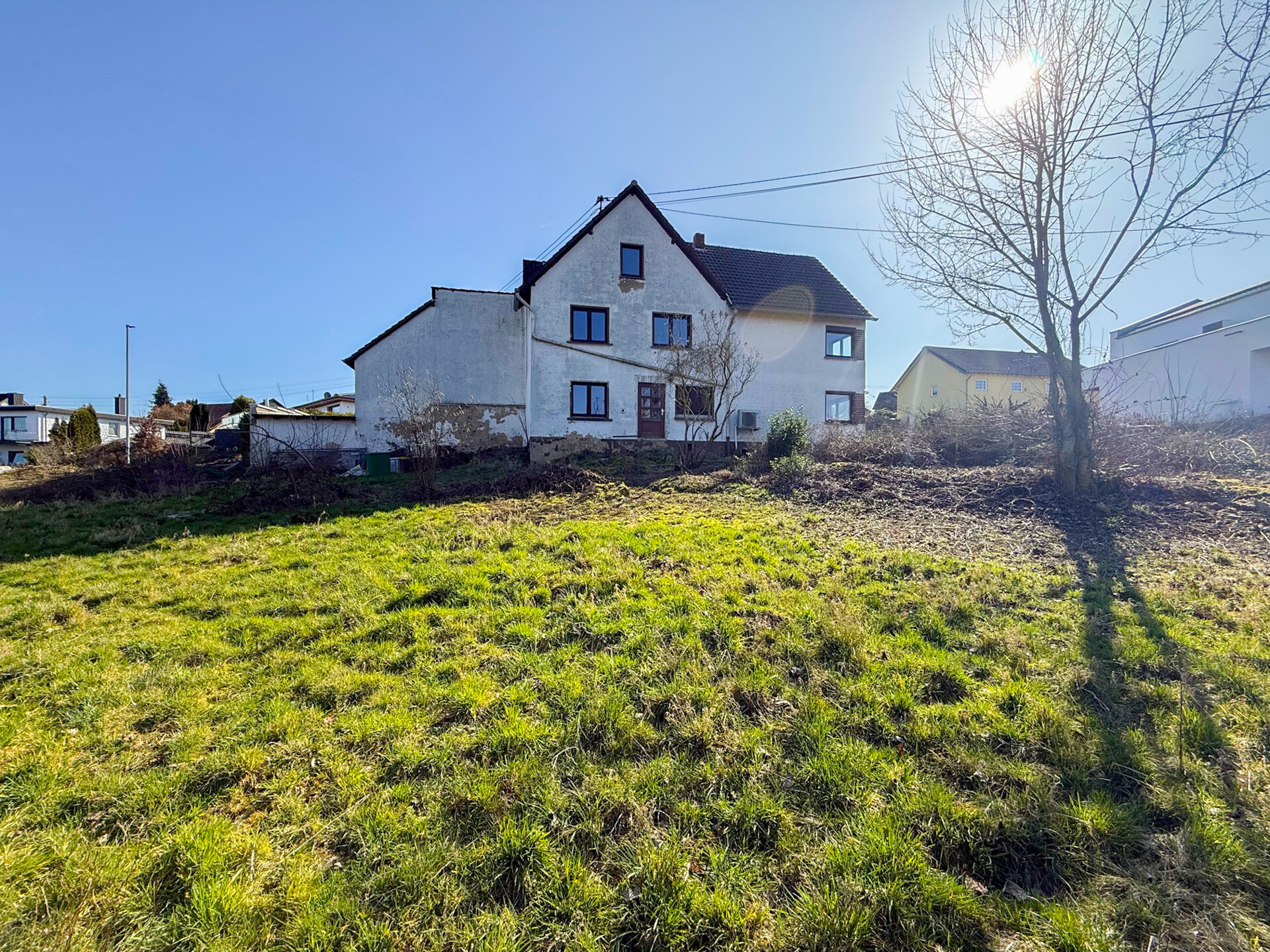 Das ca. 1.762 m² große Grundstück, das eine leichte Hanglage aufweist, bietet viel Platz und vielfältige Nutzungsmöglichkeiten. Eine Garage sowie 2 Außenstellplätze runden das Angebot ab. Der teilunterkellerte Bereich sorgt für zusätzliche Nutzfläche.