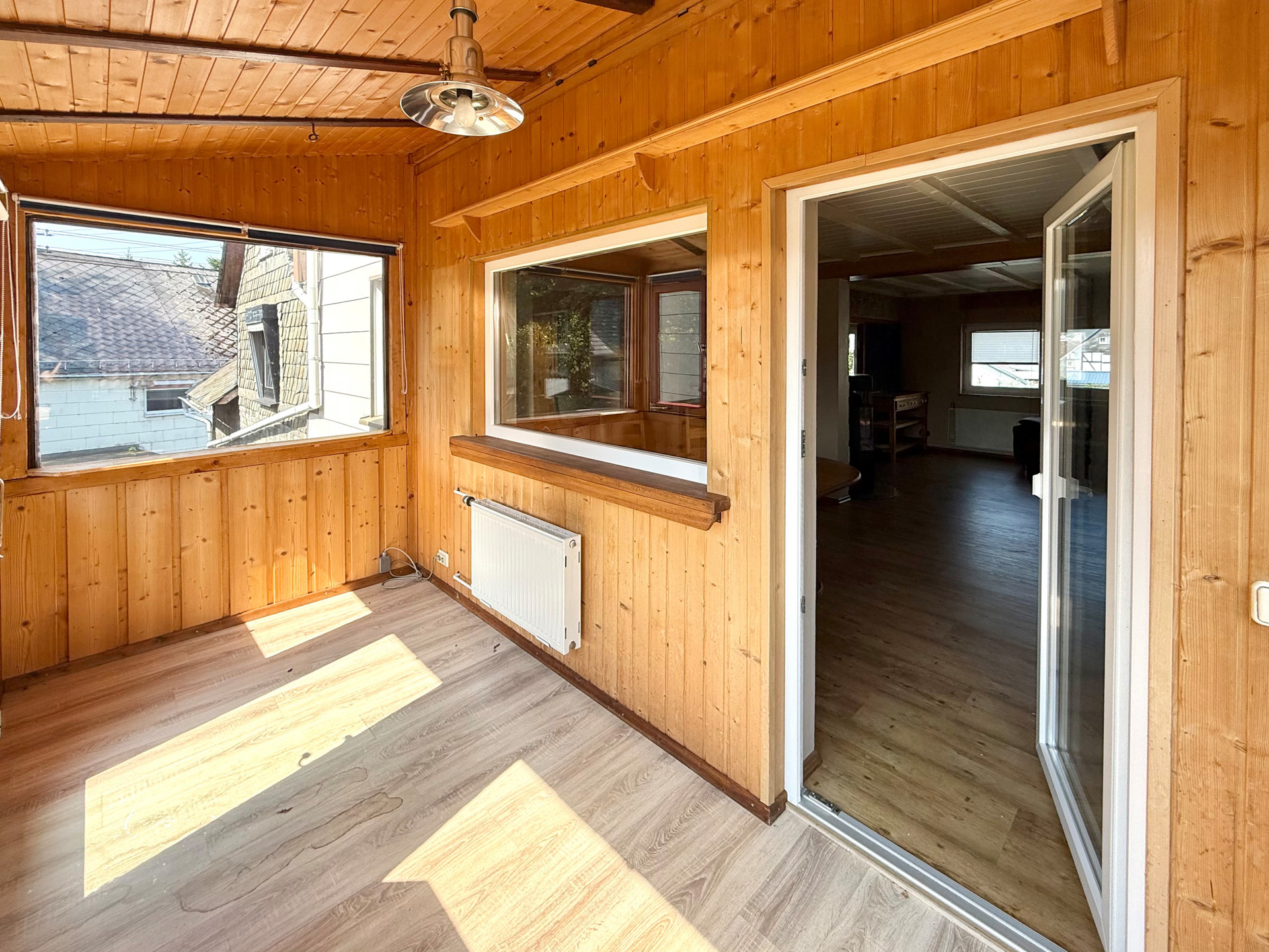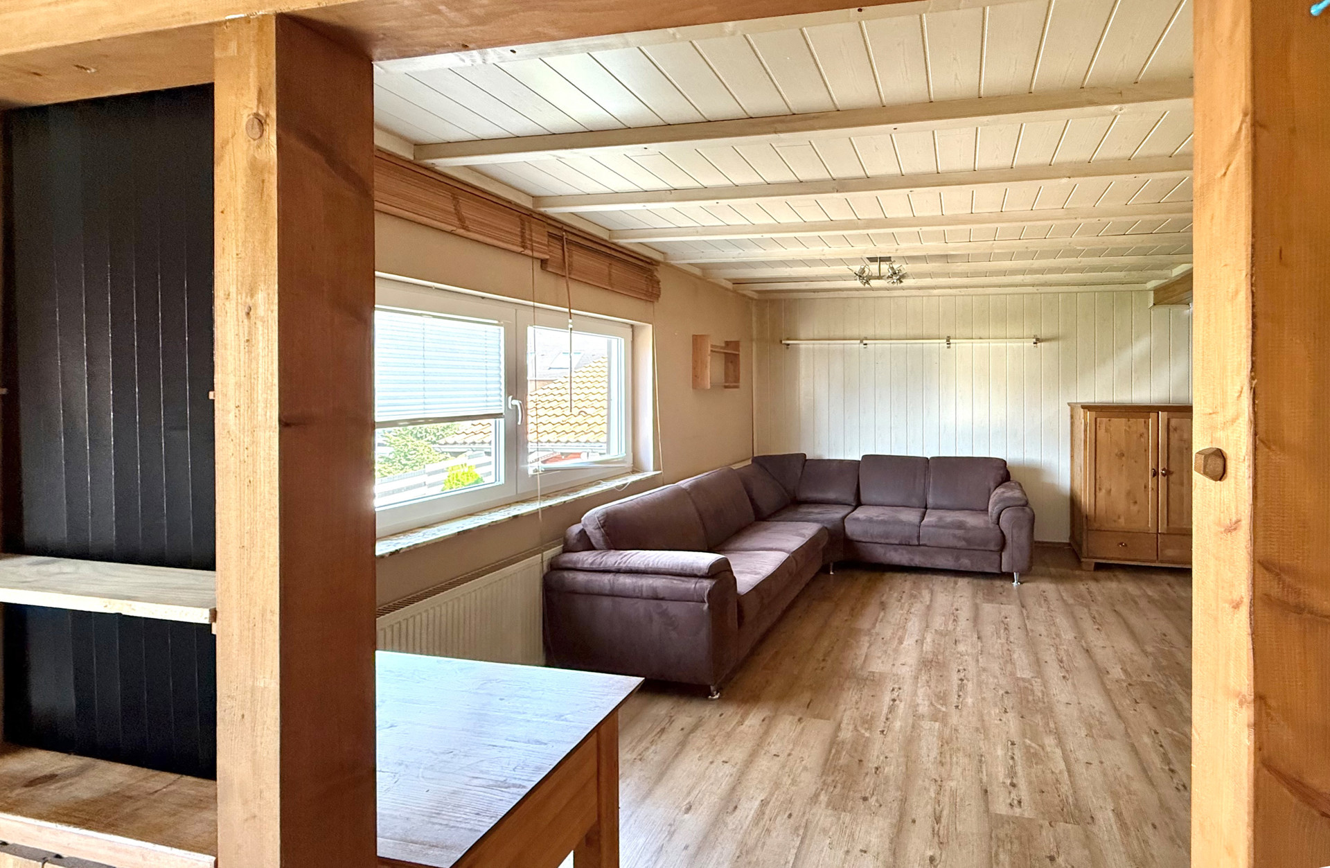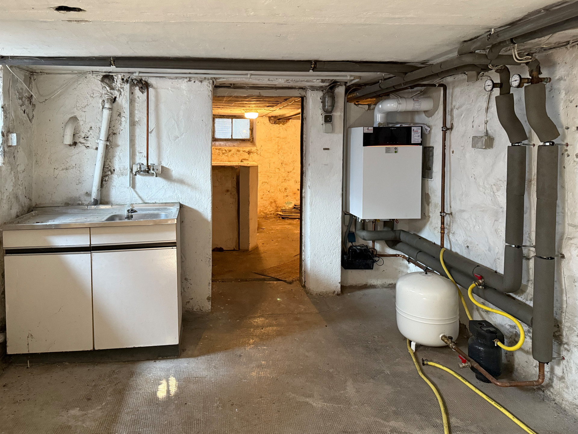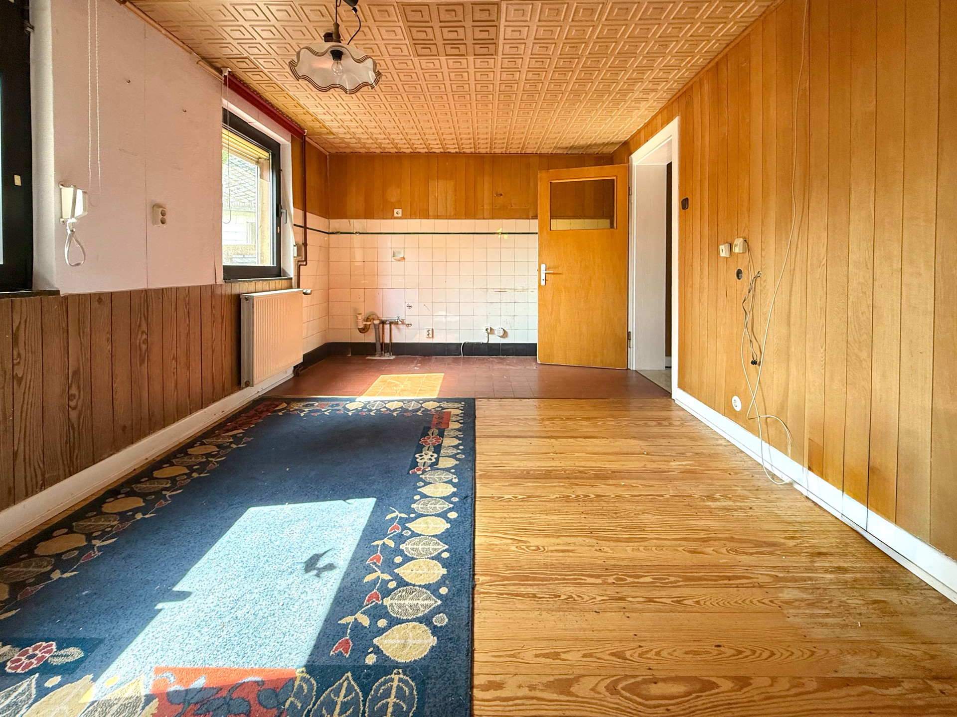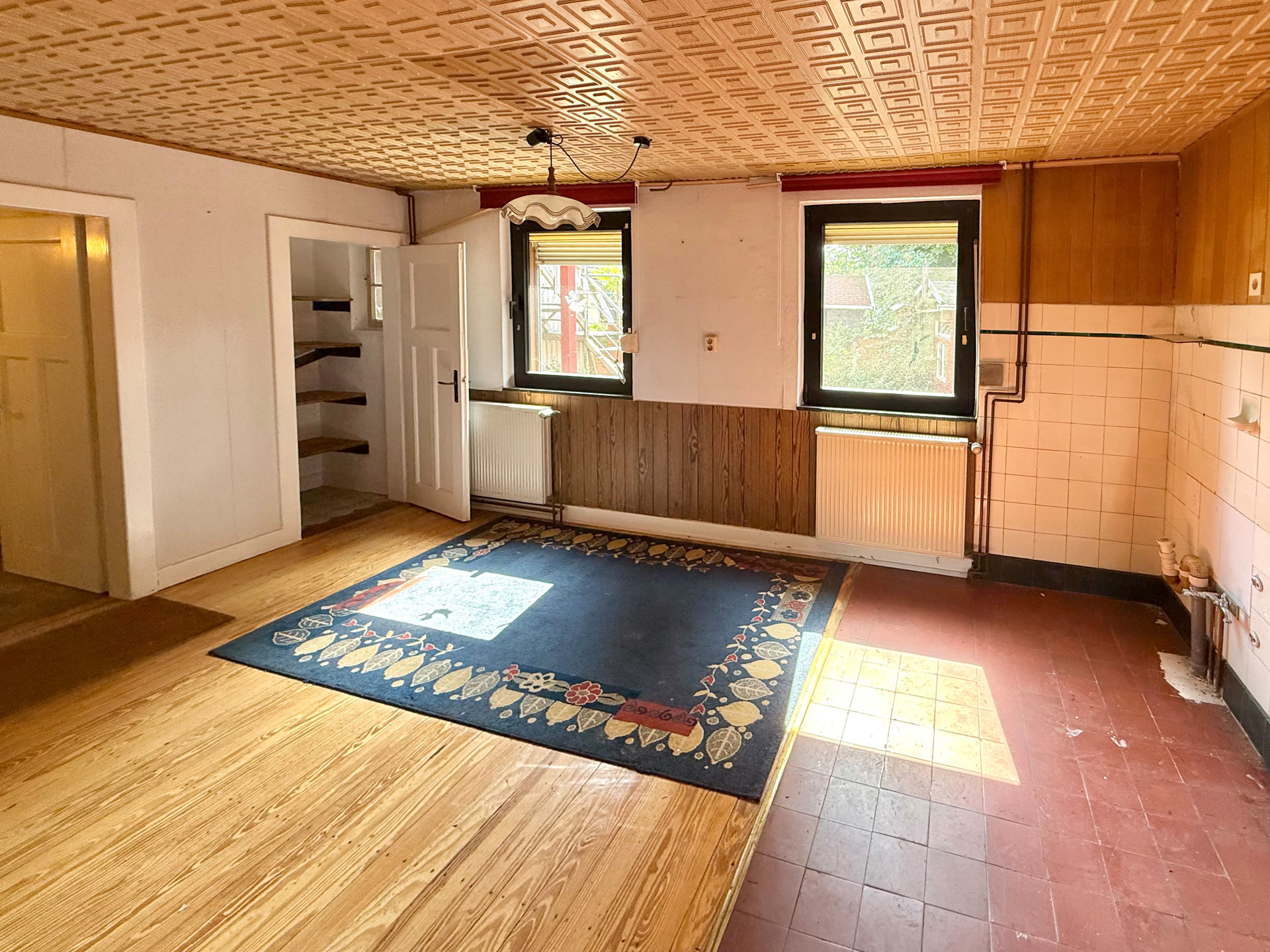 Das ehem. Bauernhaus wurde um ca. 1920 auf einem rd. 425 m² großen Grundstück errichtet und später um weiteren Wohnraum ergänzt. Heute bietet es zwei potenzielle Wohneinheiten, die aktuell miteinander verbunden sind, aber mit entsprechenden Umbaumaßnahmen separat nutzbar wären – Ideal für einen Mehgenerationenhaushalt oder zum Wohnen und/oder Vermieten. Der rechte, ursprüngliche Hausteil befindet sich in renovierungsbedürftigem Zustand und stellt einen Wohn-/Essbereich, eine Küche, ein Bad sowie ein Schlafzimmer zur Verfügung. Der linke Teil ist gepflegt und sofort beziehbar. Diese Einheit besitzt 2 Schlafzimmer, ein Duschbad, eine Ankleide, einen geräumigen Wohn-/Essbereich mit angrenzendem Wintergarten, eine Küche samt EBK sowie zwei Abstellräume. Das pflegeleichte Grundstück bietet eine große Terrasse im hinteren Bereich sowie ein Gartenhaus. Zwei separate Stromzähler sind vorhanden. Der linke Teil ist über das gemeinsame Treppenhaus im Obergeschoss oder über den Wintergarten zugänglich. Das Haus ist teilunterkellert – im Ursprungsteil befindet sich ein Bruchsteinkeller mit drei Nutzräumen. Als Parkmöglichkeit stehen zwei Garagen und 1-2 Stellplätze vor dem Objekt bereit.