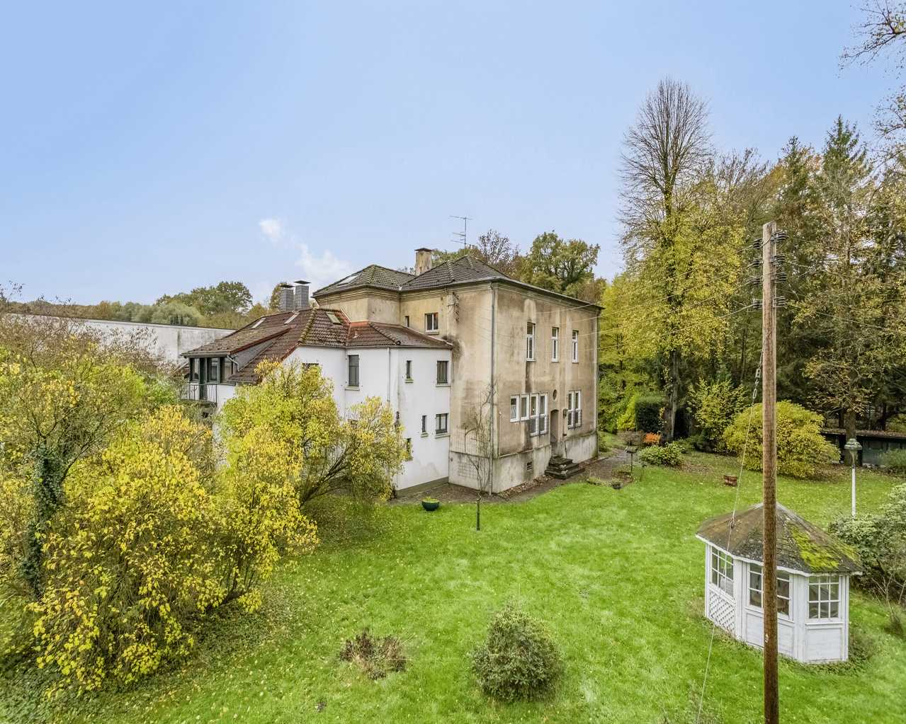 Die ehemalige Direktorenvilla wurde ca. im Jahr 1890 als vollunterkellertes freistehendes Mehrfamilienhaus auf einem beeindruckenden, ca. 6.402 m² großen Grundstück errichtet. Durch zwei verschiedene Anbauten 1920 und 1947 und eine Aufstockung im Jahr 1949 erhielt das Gebäude seine heutige Form.