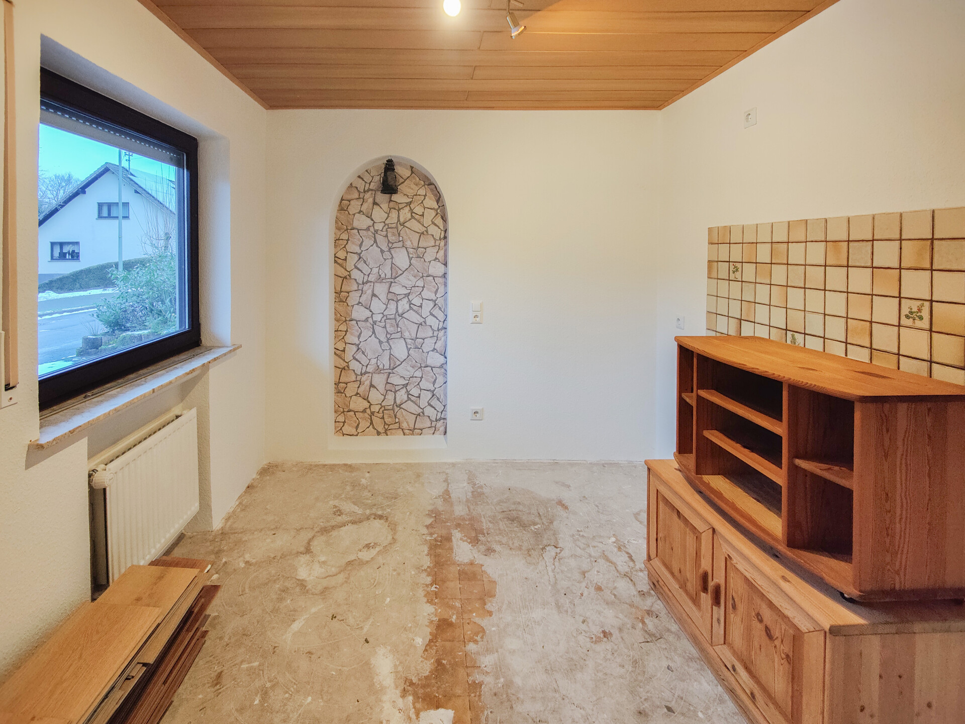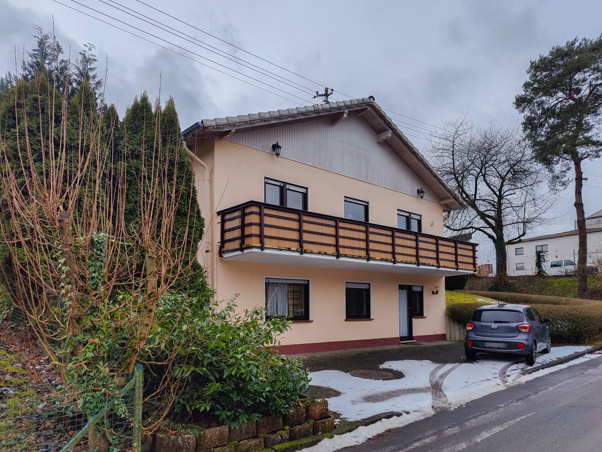 So wäre z.B. eine barrierefreie Wohnung im Souterrain denkbar, die über 2 Zimmer Küche und Bad verfügt. Weitere Kellerräume könnten der Wohnung zugeordnet werden. Alternativ kann der Wohnbereich im UG auch der Wohnung im EG zugeordnet werden, da es eine zentrale Innentreppe gibt.Im Erdgeschoss befindet sich der Hauptwohnbereich mit seinen 3 Zimmern, Küche und Bad. Vom Wohnzimmer aus gelangt man auf eine große überdachte Terrasse, die an der Rückseite des Hauses errichtet wurde. Straßenseitig befindet sich ein großer Balkon mit mehren Zugängen und herrlichem Ausblick in die Umgebung. Auf dem Grundstück wurde noch eine Gartenhütte platziert, die als Abstell- oder Partyhütte dienen könnte.