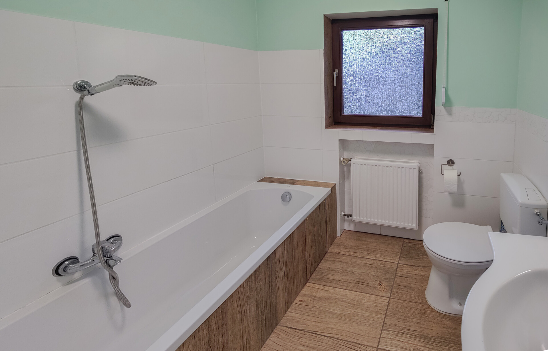 Die doppelverglasten Holzfenster stammen aus dem Baujahr des Hauses und verfügen über manuelle Rollläden. Das Bad im EG wurde erst letztes Jahr modernisiert; das Bad im UG vor ca. 10 Jahren. Das Haus hat erst kürzlich von Außen einen neuen Anstrich erhalten. Im Innenbereich besteht teilweise noch etwas Renovierungsstau.