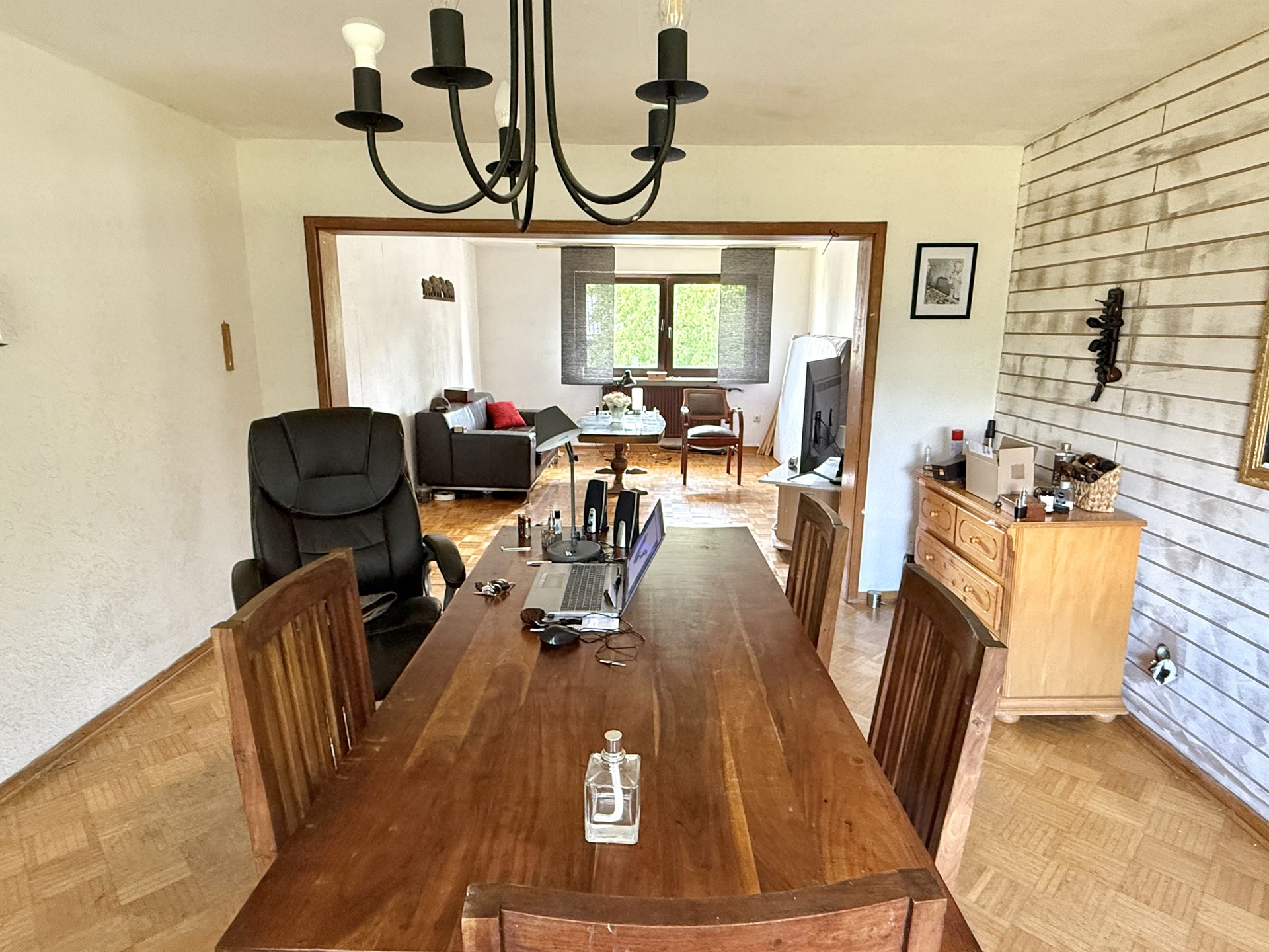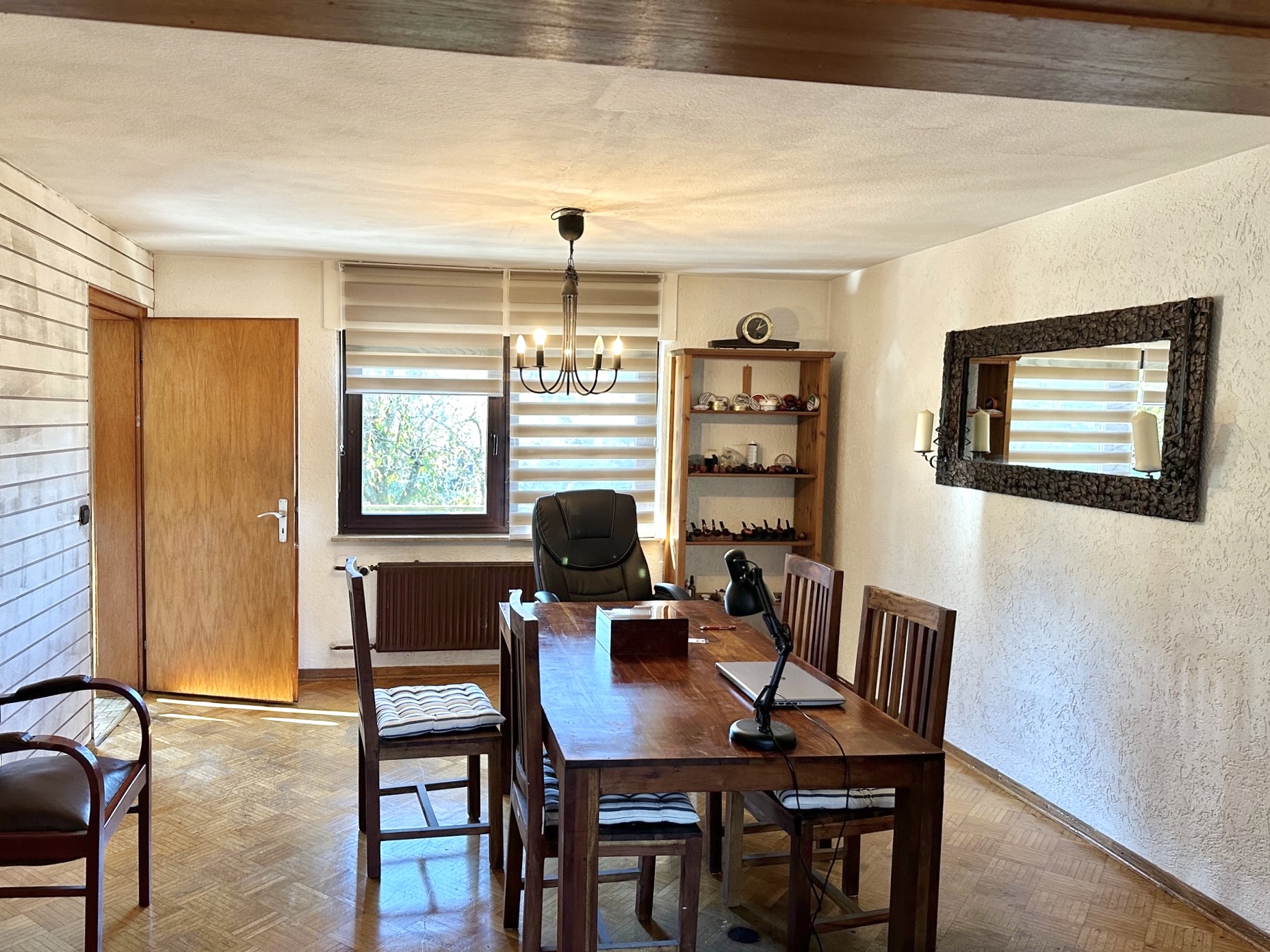 Im Obergeschoss befindet sich der Hauptwohnbereich mit ca. 80 m² Wohnfläche. Von diesem gelangen Sie auch auf kurzem Wege zum Wiesengrundstück hinter dem Haus sowie auf den ausbaufähigen Speicher. Das Obergeschoss verfügt außerdem über ein geräumiges Wohn-/Esszimmer, eine Einbauküche und 2 weitere Zimmer. Das Bad müsste ggf. modernisiert werden.