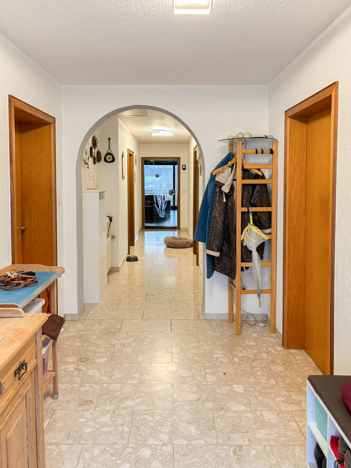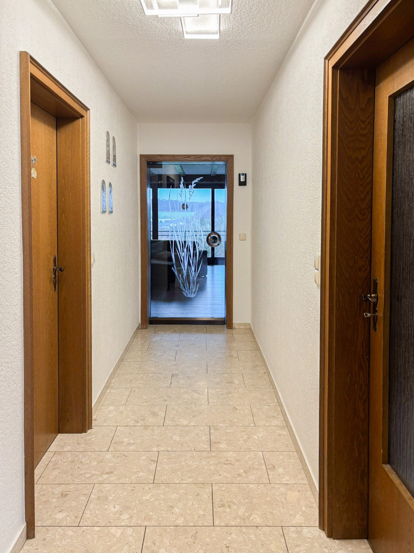 Dieses gepflegte Einfamilienhaus mit Einliegerwohnung im Untergeschoss präsentiert sich in einem guten Allgemeinzustand. Vom großzügigen Wohnzimmer mit Kaminofen können Sie vom Balkon aus eine herrliche, unverbaute Aussicht genießen. Die Einliegerwohnung umfasst zwei Zimmer, Küche, Badezimmer und kann problemlos in die Hauptwohnung integriert werden und schafft somit mehr nutzbare Wohnfläche für die Familie. In den letzten Jahren wurden die Fenster fortlaufend ausgetauscht. Darüber hinaus erfolgte 2023 die Erneuerung der Heizungsanlage sowie der Austausch des Stromverteilerkastens – ein bedeutender Vorteil für zukünftige Eigentümer. Die Bäder sowie das Gäste-WC entsprechen dem ursprünglichen Baujahr und befinden sich in einem soliden Zustand. Der Boden im gesamten Untergeschoss wurde bereits erneuert.