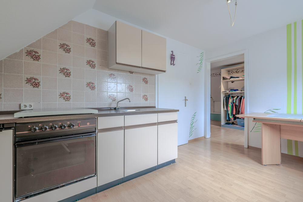 Das derzeit separierte Zimmer kann mit wenig Aufwand wieder den übrigen Räumen im Obergeschoss zugänglich gemacht werden.