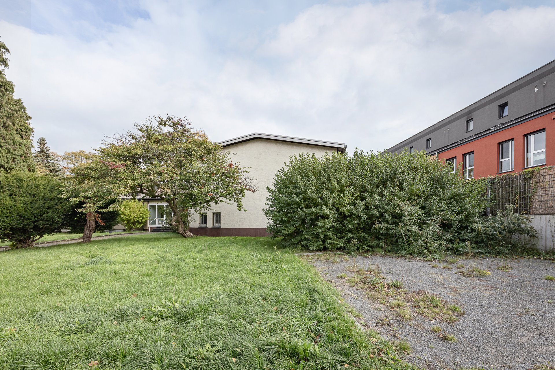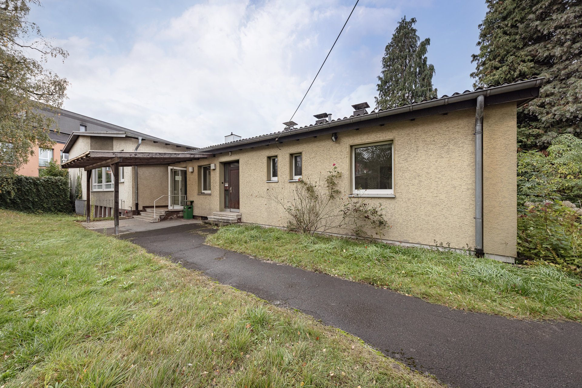 Ehemaliges Gemeindezentrum mit angrenzendem Wohnhaus auf einem Grundstück der Ev. Kirche. Hier sind großzügige Räumlichkeiten mit vielerlei Potenzial und Nutzungsmöglichkeiten gegeben. Zudem steht eine attraktive Außenfläche zur Verfügung, welche ebenso umgestaltet und an die jeweiligen Vorstellungen angepasst werden kann.