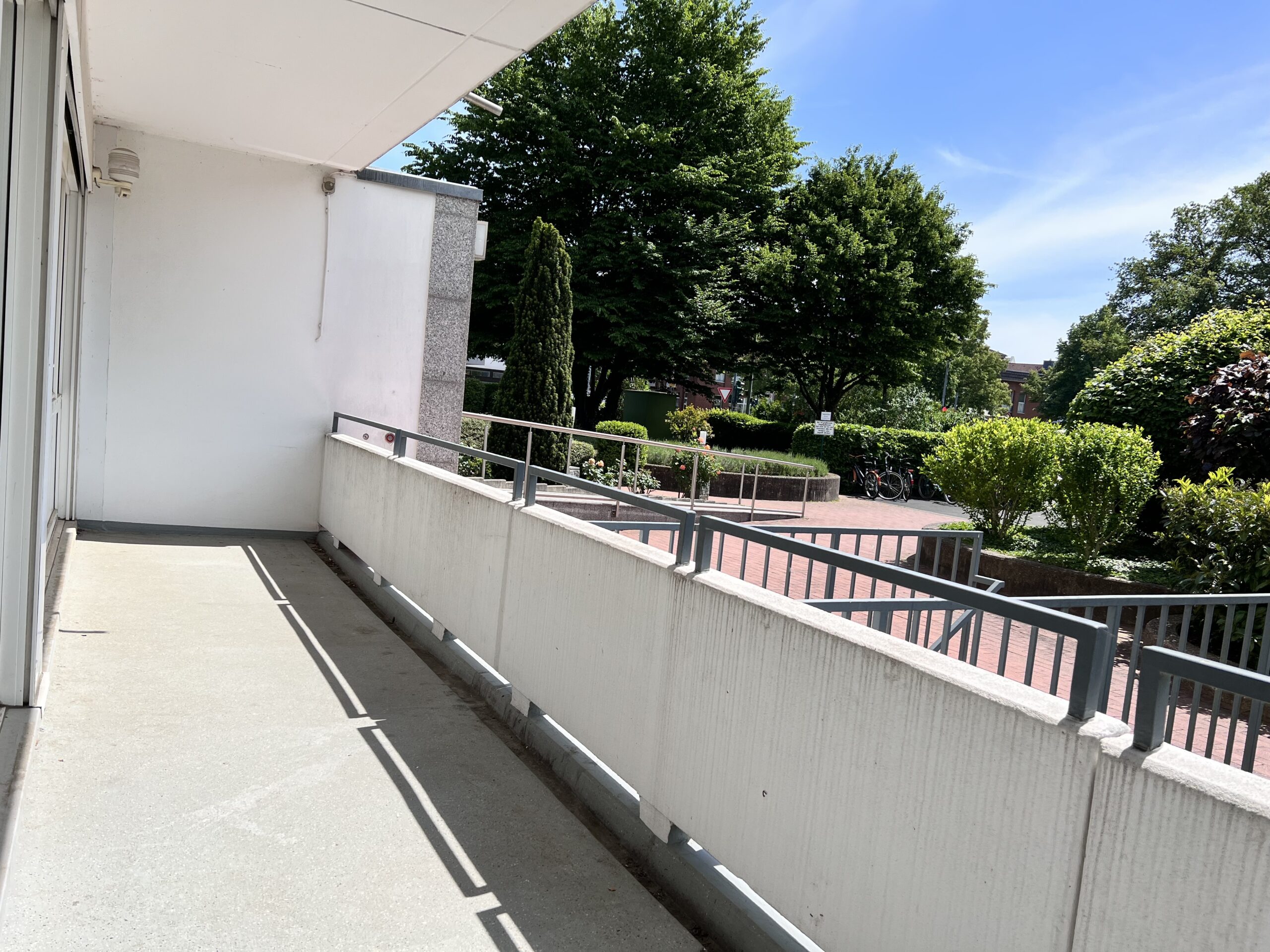 Die optimal geschnittene und barrierefreie Eigentumswohnung befindet sich im Erdgeschoss eines mit 2 Aufzügen ausgestatteten Hochhauses mitten in Refrath. Die Wohnung verfügt über ein großes, helles Wohnzimmer und ein Schlafzimmer, eine offene Küche, eine Diele, einen Abstellraum sowie ein Bad mit Wanne. Den großen Balkon kann man vom Wohnzimmer betreten. Zur Wohnung gehört ein Kellerraum. Das Haus verfügt über zwei Fahrradkeller.