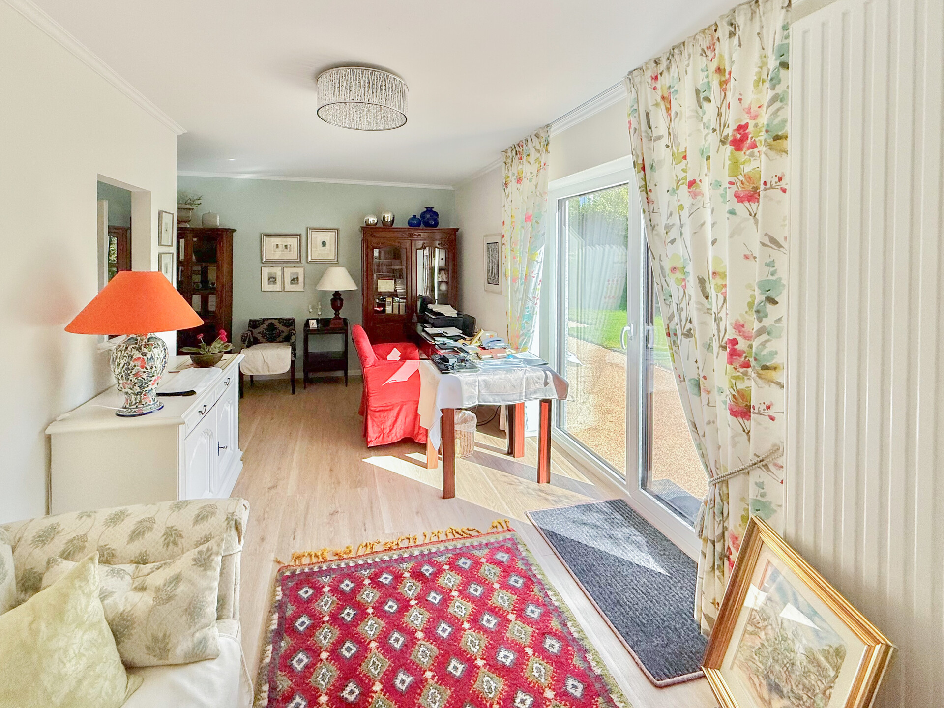 Das 1979 errichtete Kampa-Fertighaus wurde 2015 umfassend saniert und präsentiert sich heute in einem modernen, sehr gepflegten Zustand.