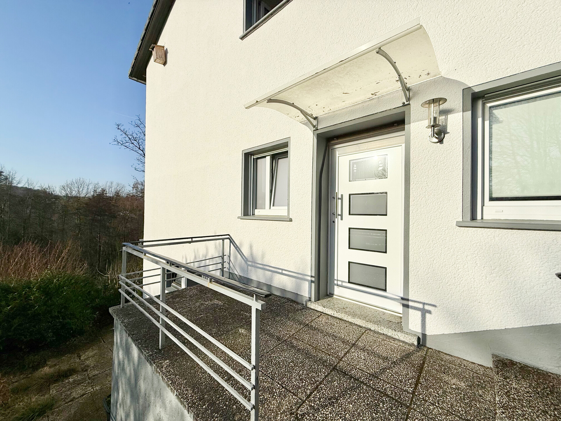 Dieses Zweifamilienhaus aus ca. 1965 befindet sich auf einem großzügigen Grundstück von ca. 908 m² in Hanglage mit Gartenanteil. Als letztes Haus in der Zuwegung gelegen, bietet die Immobilie eine besonders ruhige Wohnlage. Durch die Hanglage befinden sich unterhalb des Grundstücks keine weiteren Häuser. Dadurch ergibt sich eine freie Sicht. Die Immobilie bietet zwei Wohneinheiten und eignet sich sowohl für Mehrgenrationenwohnen als auch zur Teilvermietung. Die Erdgeschosswohnung verfügt über 4ZKB (ca. 89 m²) sowie über eine zusätzliche Gästetoilette. Neben zwei Schlafzimmern steht ein weiteres Zimmer zur Nutzung als Büro oder Gästezimmer zur Verfügung. Vom Wohnzimmer aus genießen Sie den herrlichen Blick ins Grüne. Die Einbauküche wurde 2018 erneuert. Der Dachboden ist über eine ausklappbare Treppe erreichbar und bietet Zugang zur Loggia. Über das Treppenhaus gelangt man zudem ins Untergeschoss. Dort befinden sich eine weitere Wohneinheit mit 2ZKB /ca. 79 m²) sowie zusätzliche Kellerflächen. Das Wohnzimmer bietet Zugang zu einem großen Balkon. Die Einbauküche aus dem Jahr 2016 verbleibt auch hier im Objekt. Eine Garage mit manuellem Tor und ein Freiplatz befinden sich direkt vor dem Haus.