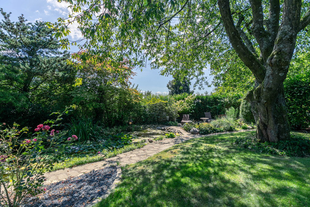 In diesem wunderschönen Garten mit großer Teichanlage können Sie entweder entspannen oder aktiv werden! Auf den beiden traumhaften Terrassen kann man ausgiebig relaxen und die Seele baumeln lassen. Der herrliche Garten bietet noch jede Menge Freiraum für Ihren grünen Daumen. Hier ist für jeden etwas dabei!