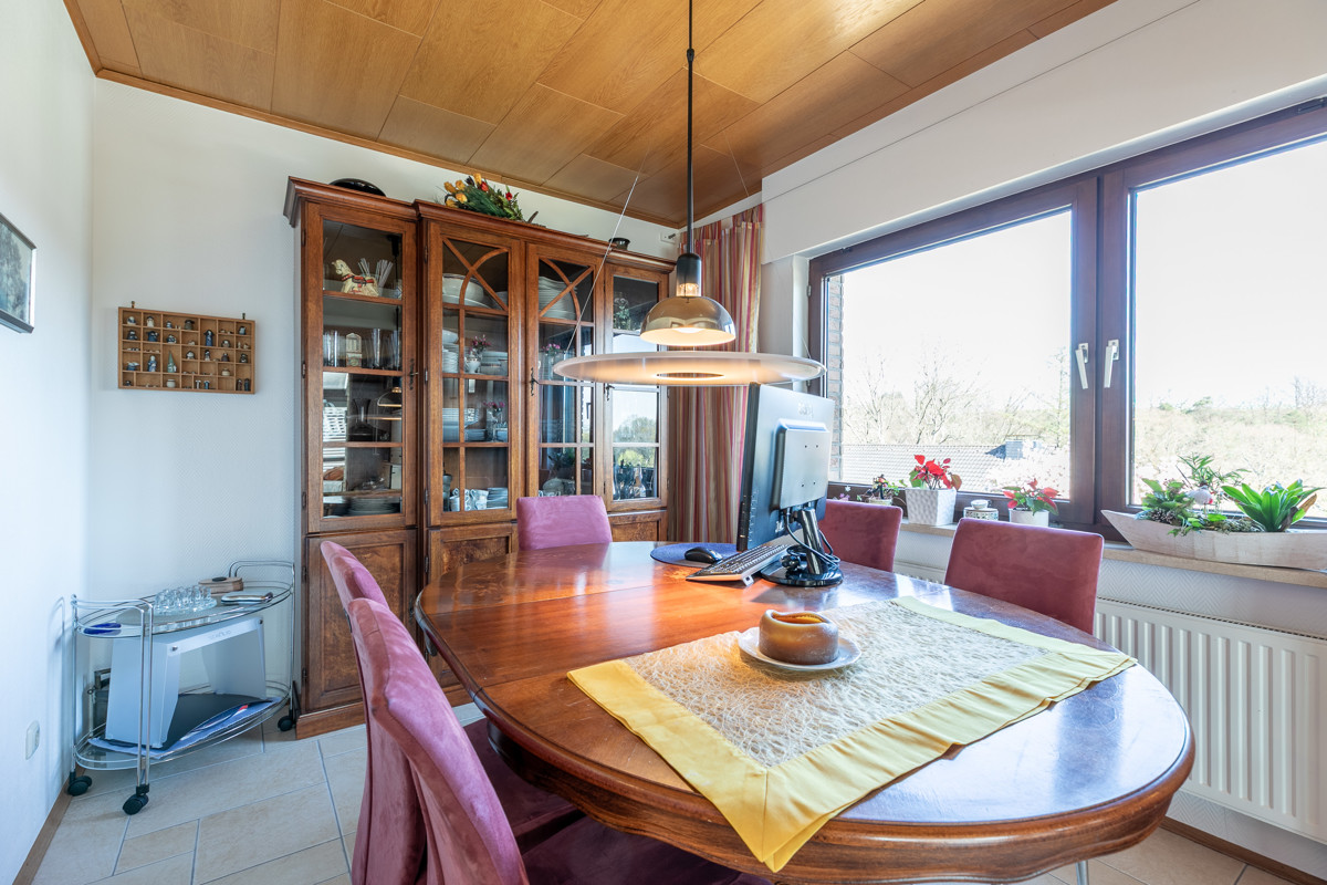 Lichtdurchflutete Architektur empfängt Sie im Erdgeschoss schon beim Betreten des Hauses. Der großzügige Wohn-/Essbereich mit angrenzender Küche wird Sie sofort begeistern. Ein herrlicher Wintergarten beschert Ihnen einen wunderbaren Ausblick in die Natur zu jeder Jahreszeit. Auf dem großen Südbalkon genießen Sie gemütliche Stunden, oder Sie nutzen direkt die praktische Treppe in den herrlichen Garten. Zurück im Erdgeschoss bieten Ihnen zwei Schlafzimmer mit Klimaanlage angenehme Rückzugsmöglichkeiten. Ein großzügiges Vollbad und ein separates WC schaffen auf dieser Etage Platz für alle bei der morgendlichen Routine. Im Untergeschoss befinden sich nochmals Ausweichmöglichkeiten in Form von Dusche und separatem WC. Hier gibt es außerdem zwei zu Wohnzwecken ausgebaute Räume, die perfekt für Gäste, Büro oder Hobby zu nutzen sind. Ein besonderes Highlight dieser Einheit stellt der integrierte Saunabereich dar. Der direkte Zugang in den Garten garantiert Entspannung pur! Hier hat ein Gartenarchitekt ein kleines Paradies geschaffen, das mit seinen verschlungenen Wegen und Sitzplätzen zum Wandeln, Verweilen und Staunen einlädt.