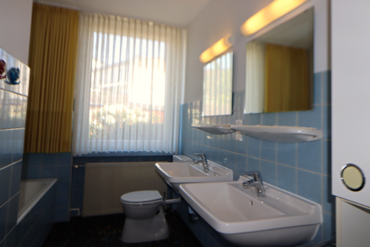 – Wannenbad mit Waschbecken, WC und Fenster