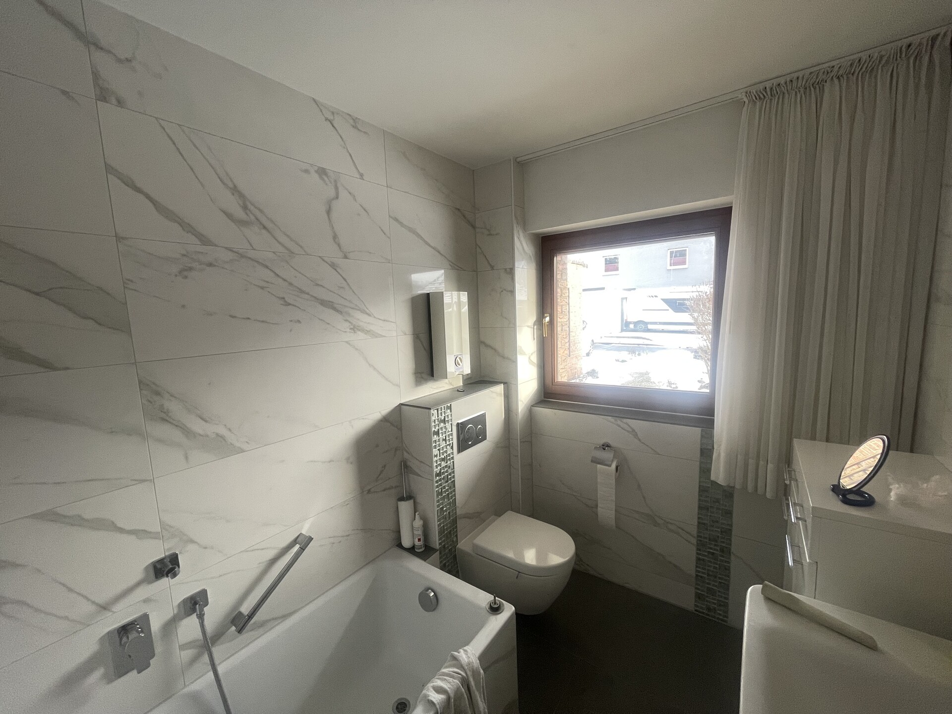 - Badausstattung: Badewanne, Fenster im Badezimmer