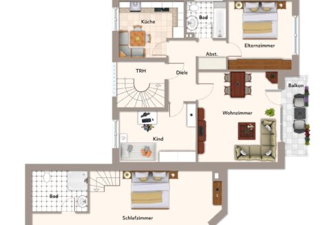 Die Obergeschosswohnung umfasst ca. 69 m² Wohnfläche und eignet sich hervorragend als Einliegerwohnung, Gästeetage oder als Erweiterung des Hauptwohnraums.