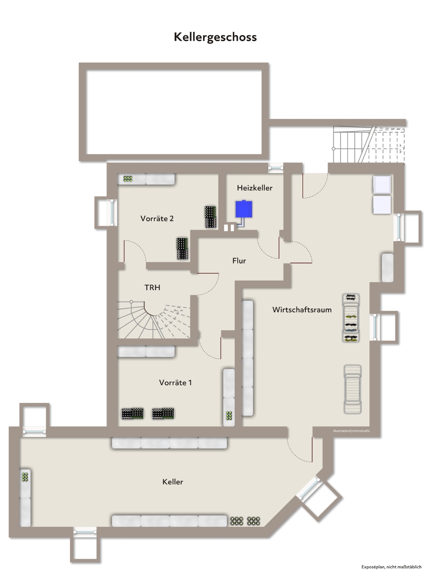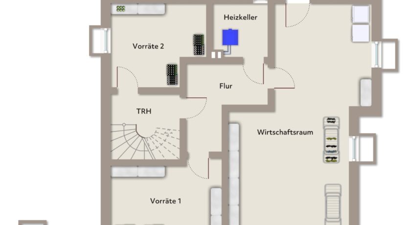 Vollunterkellerung mit Stauraum und Technikbereich