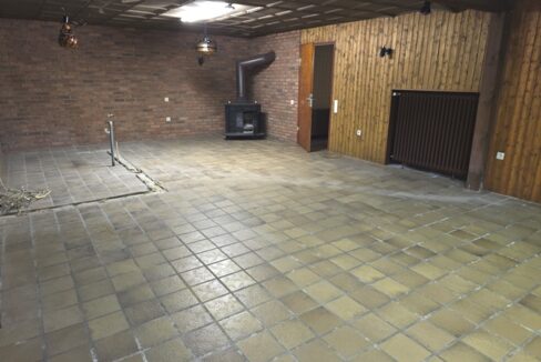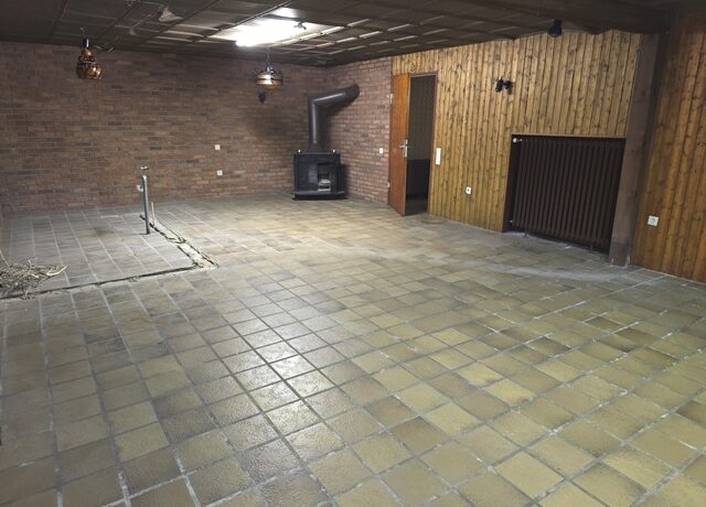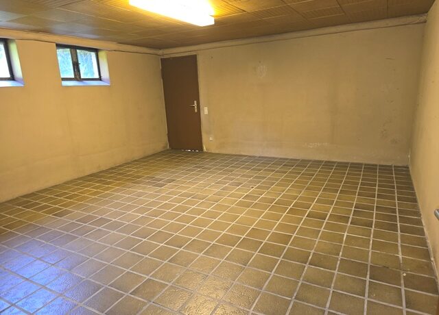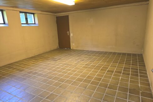 Auch das Kellergeschoss ist vollständig ausgebaut und gefliest. Neben einem Hauswirtschaftsraum gibt es ein Gäste-Schlafzimmer sowie einen Partyraum mit Kaminofen. Ein weiteres Bad mit Dusche und Waschbecken ergänzt das Angebot.
