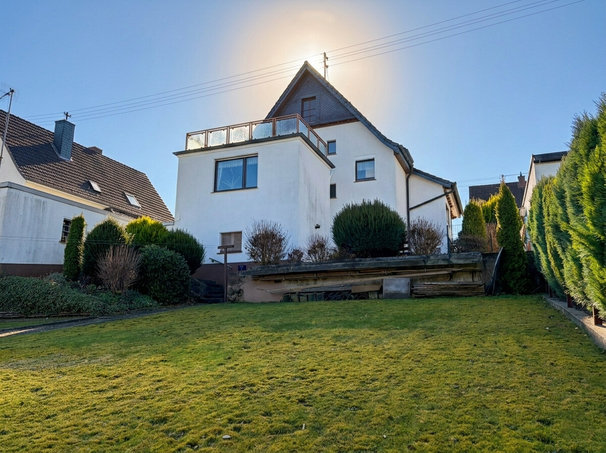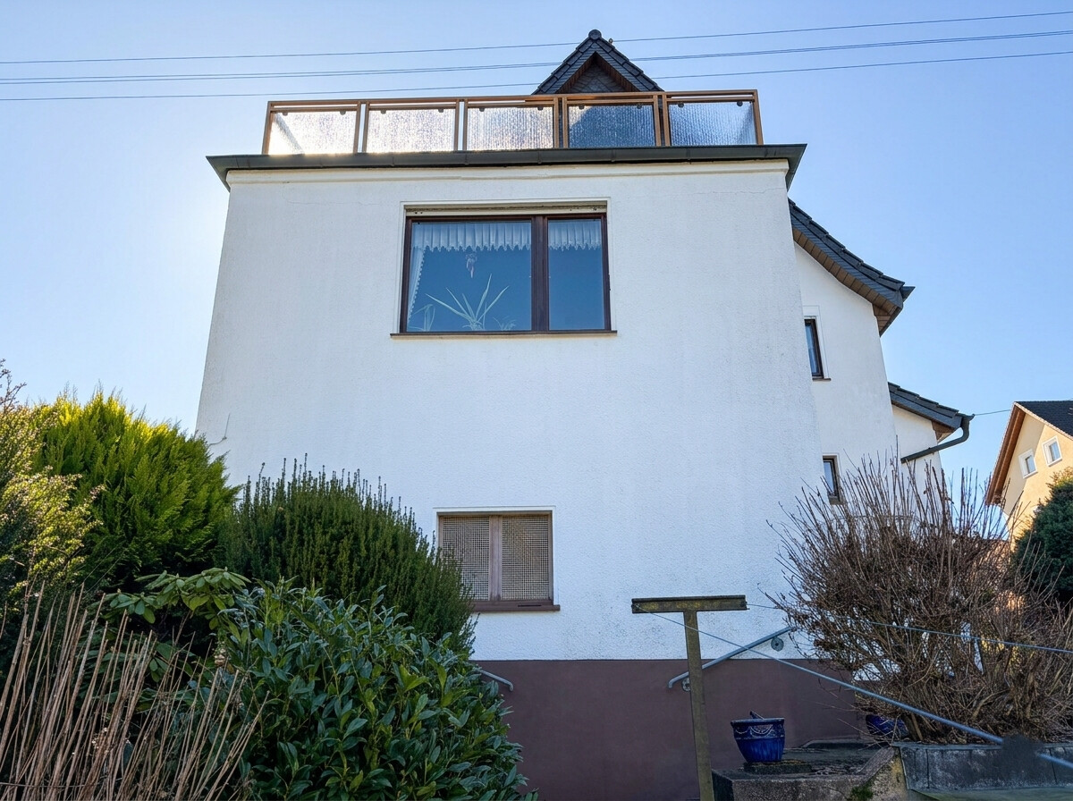 Hier genießen Sie die Ruhe einer Seitenstraße, ohne auf die Annehmlichkeiten einer modernen Kleinstadt verzichten zu müssen. Dieses einladende Einfamilienhaus hat seinen Ursprung im Jahr 1938 und wurde um 1959/60 durch einen Anbau erweitert. Das Wohnhaus präsentiert sich auf einer soliden Grundsubstanz, die eine hervorragende Basis bietet, um sich den Traum vom individuellen Eigenheim zu verwirklichen. Mit einer Wohnfläche von ca. 130 m² eignet sich das Haus sowohl perfekt für Paare mit Familienplanung als auch für Familien mit zwei Kindern. Das Raumangebot wird durch den ausgebauten Spitzboden ergänzt, der zusätzliche Nutzfläche für ein ruhiges Home-Office (mgl. ist ein Highspeed-Internet mit bis zu 100 MBit/s, der Ausbau von modernem Glasfaser ist bereits in Planung) oder ein gemütliches Lese-/Spielzimmer bietet. Ein besonderes Highlight ist die großzügige Dachterrasse im Obergeschoss, die mit einer unverbaubaren Aussicht besticht und den perfekten Ort für entspannte Stunden im Freien bietet. Im Außenbereich lädt der gepflegte Garten zum Verweilen und Spielen ein, während zwei Einzelgaragen ausreichend Platz für PKWs und zusätzlichen Stauraum garantieren.