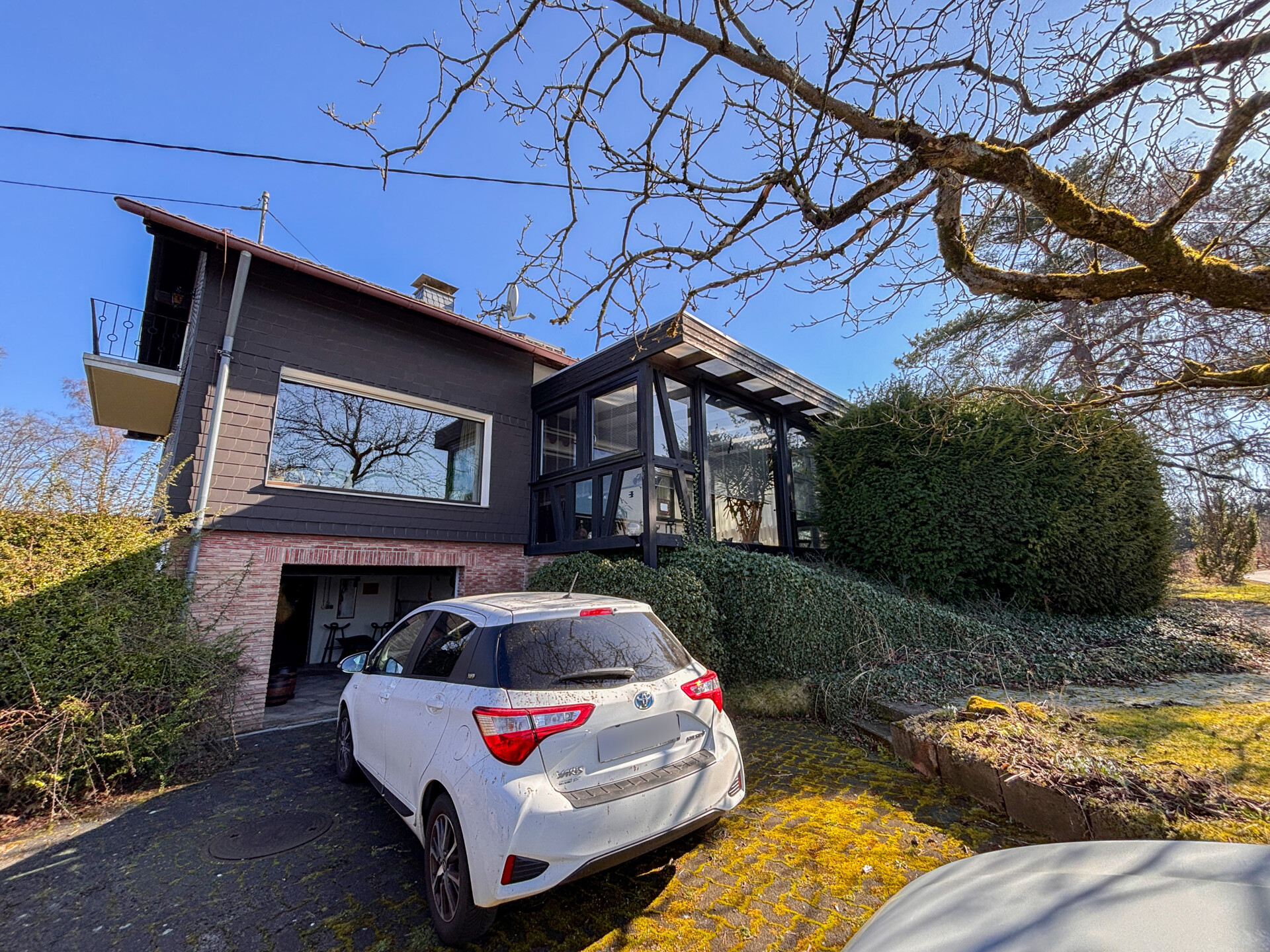Dieses massiv erbaute und gepflegte Einfamilienhaus aus dem Jahr 1966 bietet auf zwei Etagen eine Wohnfläche von ca. 113 m². Das großzügige Grundstück mit etwa 3.964 m² teilt sich in 2 Flurstücke auf und eröffnet zahlreiche Möglichkeiten zur individuellen Gestaltung und lädt mit seiner herrlichen Aussicht zum Verweilen ein. Im Erdgeschoss erwartet Sie ein durchdachter Grundriss mit einem Gäste-WC, einem Badezimmer sowie einem Arbeitszimmer, individuell als Gästezimmer nutzbar. Das Herzstück dieser Etage bildet der großzügige Wohn- und Essbereich mit Kaminofen. Von hier aus gelangen Sie direkt in den Wintergarten. Ergänzt wird das Erdgeschoss durch eine Küche. Das Dachgeschoss bietet drei Schlafzimmer, ein separates WC und ein Tageslichtbad. Die beiden Schlafzimmer verfügen jeweils über einen eigenen Balkon mit Blick in den Garten, wobei eines der Zimmer zusätzlich mit einer praktischen Ankleide ausgestattet ist. Das Haus ist unterkellert und bietet damit zusätzlichen Stauraum. Hier befinden sich eine gemütliche Kellerbar, eine Waschküche, ein Vorratsraum sowie der Heizungsraum. Zudem besteht ein direkter Zugang zur Garage.