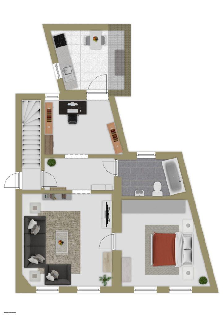 – OG rechts: ca. 43 m² – aktuell vermietet für 410 €