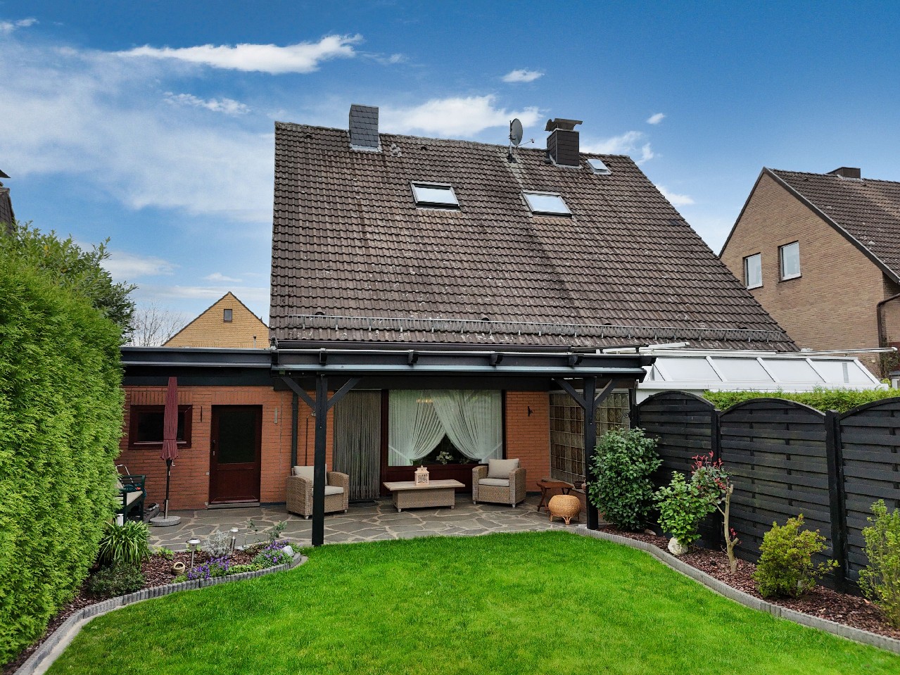 gr. tlw. überdachte Terrasse und schöner Garten