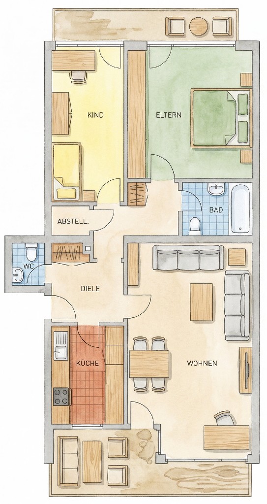 Das gepflegte Objekt ist hochwertig ausgeführt und traditionell ausgestattet. Aus heutiger Sicht entspricht der Standard aber im Detail nicht mehr den modernsten Wohnansprüchen. Eine Modernisierung des G-WC, sowie eine Erneuerung der Fenster wäre sinnvoll. Die Wohnung bietet daher genug Raum zur Realisierung der eigenen Wohnvorstellungen.