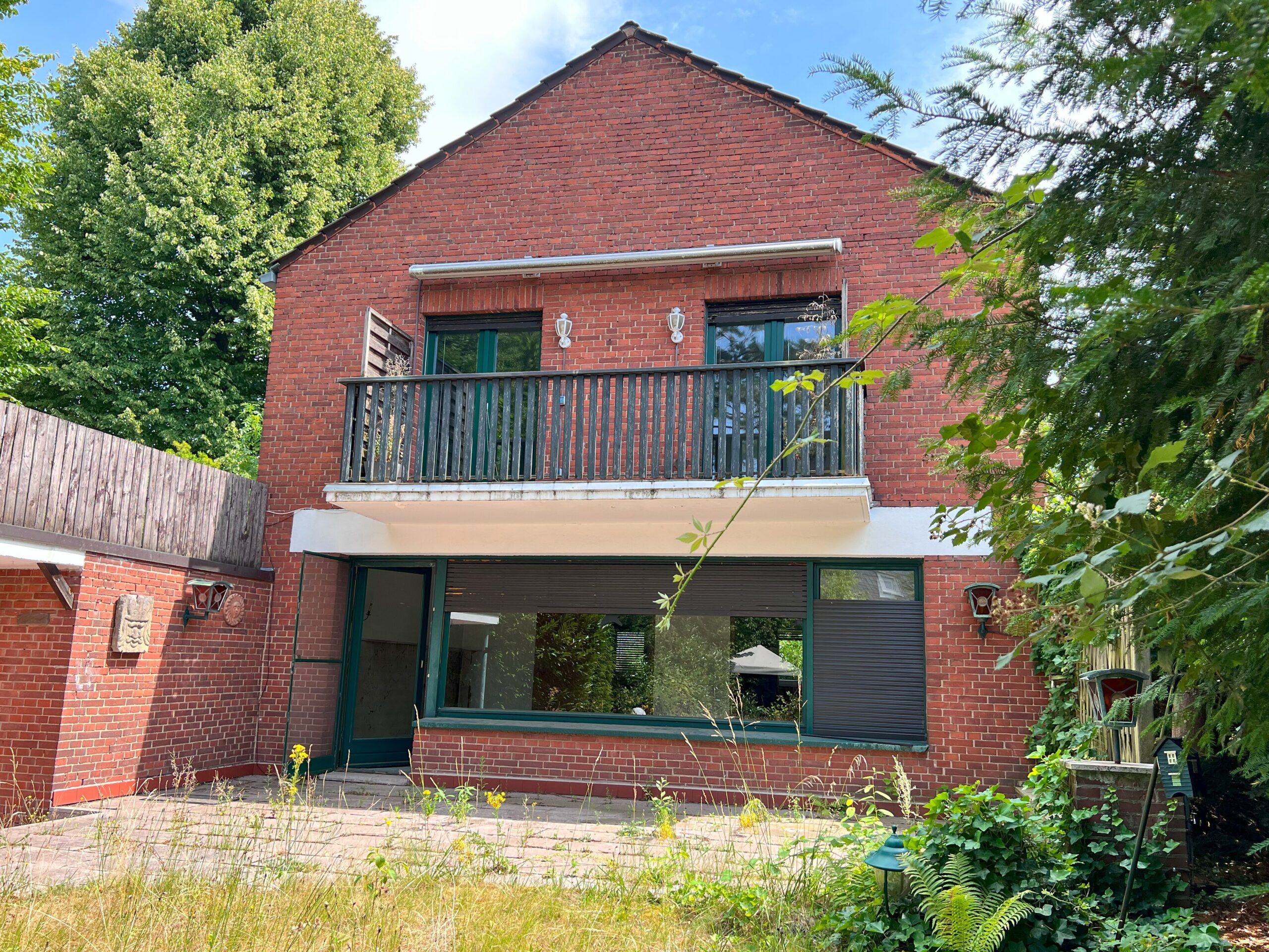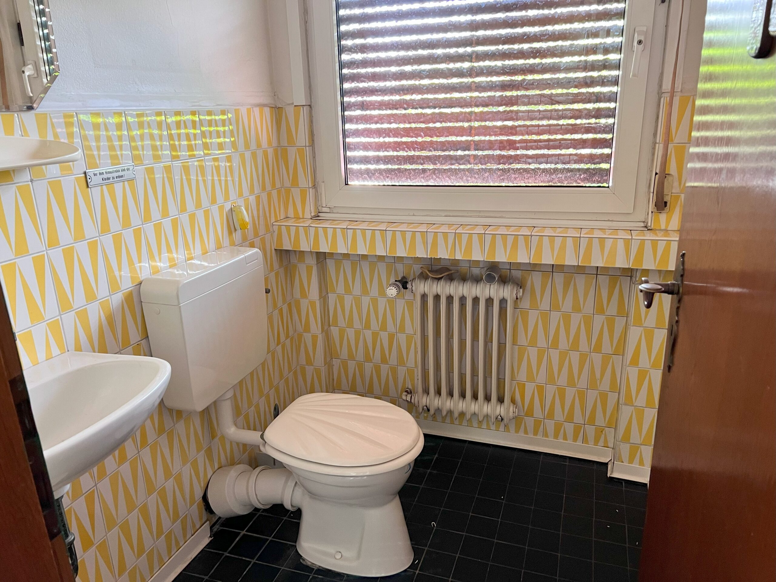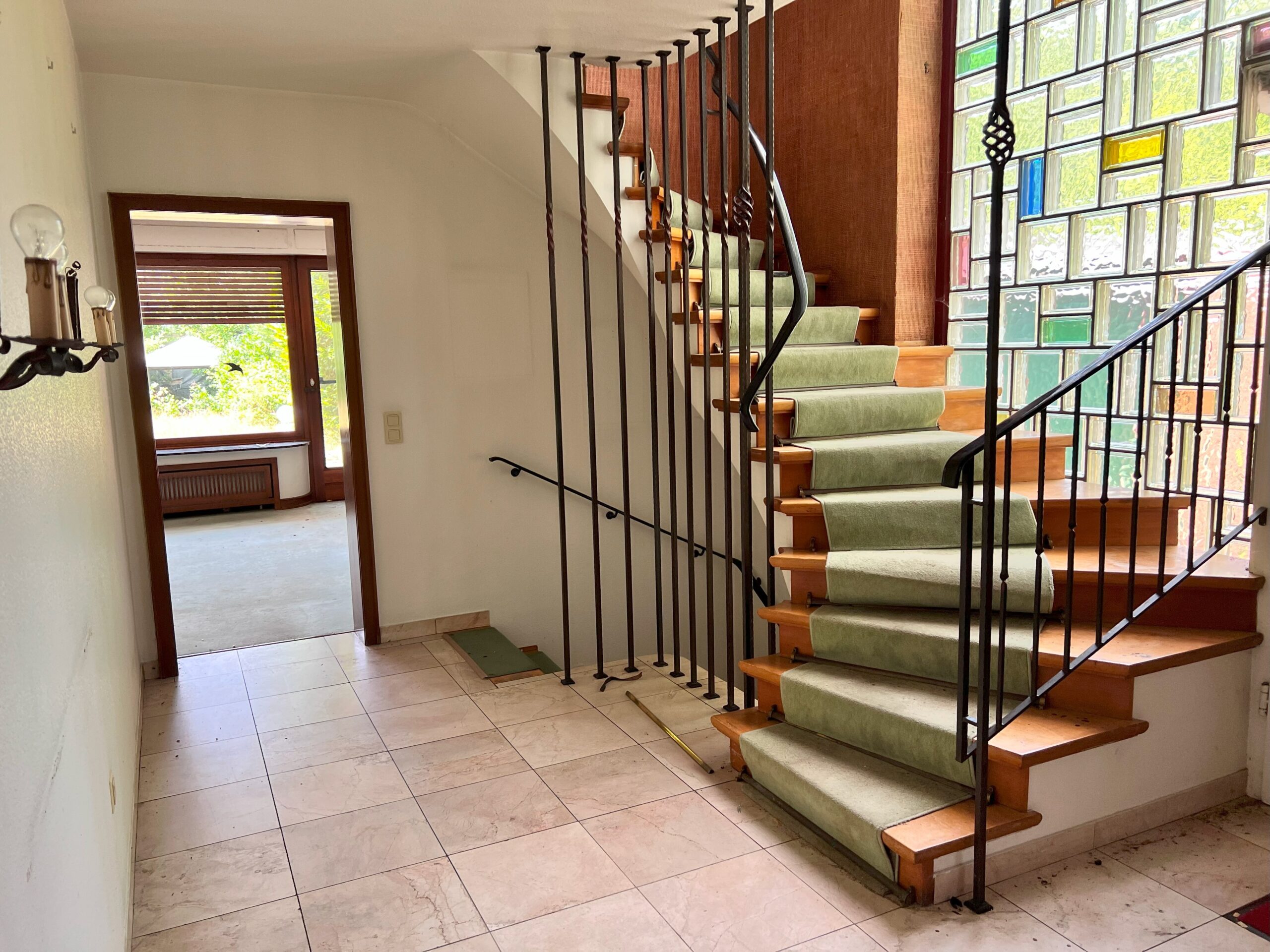 Das freistehende und komplett unterkellerte Einfamilienhaus besticht durch den Charme der 1960er Jahre. Vom Erdgeschoss mit geräumiger Diele, großem Wohn-/Esszimmer, Gäste-WC und Küche mit Vorraum und Abstellkammer führt eine geschwungene Treppe ins Obergeschoss mit 4 Zimmern zwei Bädern und einem Balkon. Der Garten ist eben und vielfältig nutzbar; zum Haus gehört eine Garage mit rückwärtigem überdachten Freisitz sowie Stellplätzen vor der Garage. Das Haus ist renovierungs- und sanierungsbedürftig.