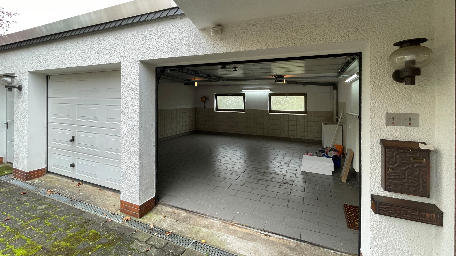 Eine Doppelgarage mit elektrischem Rolltor und die Stellplätze davor bieten Ihnen ausreichend Platz, Ihre Fahrzeuge unterzustellen.