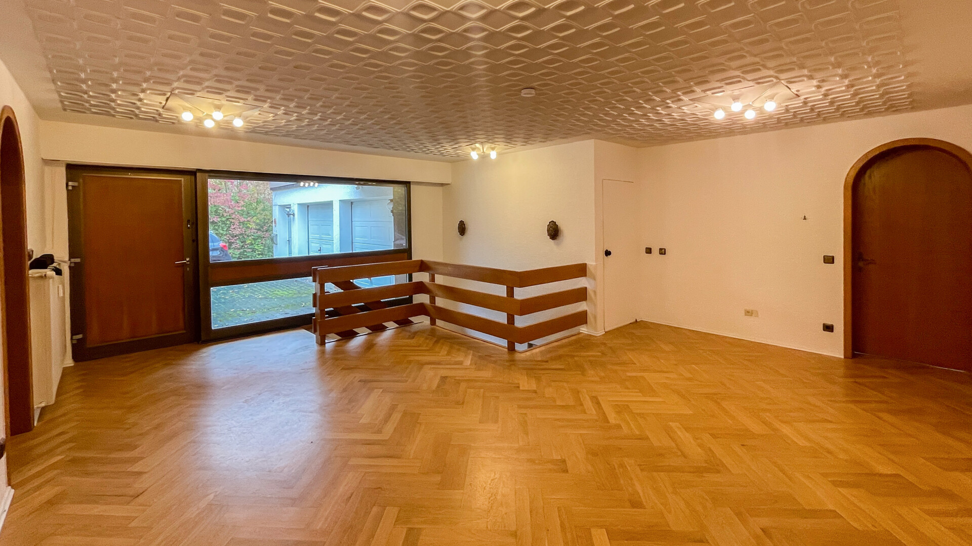 Er umfasst eine Wohnfläche von ca. 170 m². Im Erdgeschoss befinden sich eine einladende, geräumige Diele, ein großes Wohnzimmer mit Kamin und Zugang zu Terrasse und Garten, ein Schlafzimmer, ein Esszimmer, eine Küche, ein Badezimmer, ein Büro sowie 2 Gäste-WCs. Im Keller stehen Ihnen ein Abstellraum und ein großer Hobbyraum mit angrenzender Sauna sowie einer Dusche zu Verfügung.
