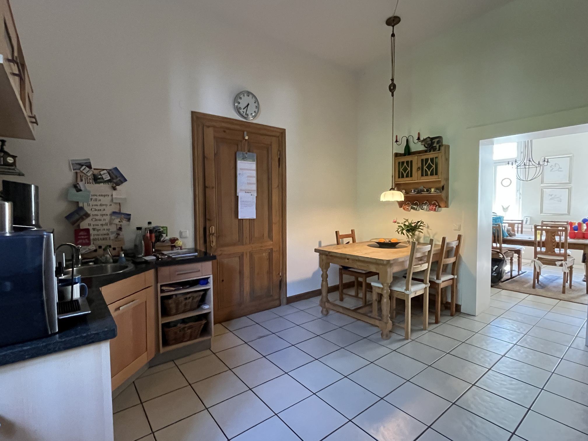 Im Erdgeschoss befinden sich eine Diele, eine geräumige Küche, ein Esszimmer (auch als Wohnzimmer nutzbar), ein Gäste-WC sowie ein Gästezimmer mit eigenem Bad im rückwärtigen Anbau.