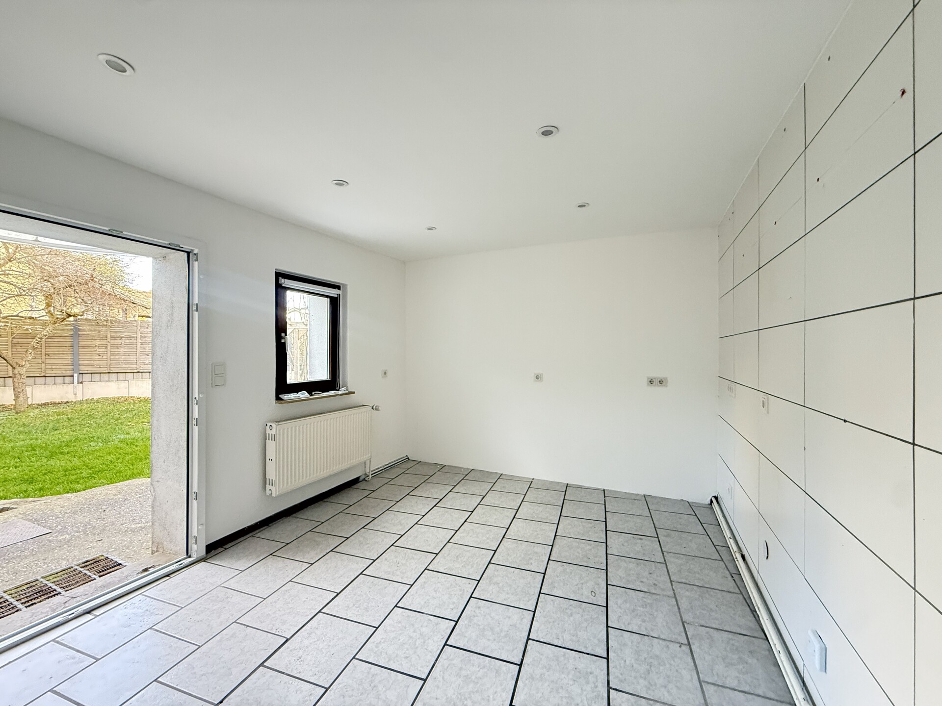 Im Erdgeschoss befinden sich ein flexibel nutzbares Gästezimmer bzw. Homeoffice, ein Badezimmer mit Dusche sowie ein großzügiges Wohnzimmer mit Durchgang zum Essbereich. Die angrenzende Küche bietet direkten Zugang zur Terrasse und in den Garten – perfekt für Familienzeit im Freien, zum Spielen, Entspannen oder für gemeinsame Mahlzeiten an warmen Tagen.