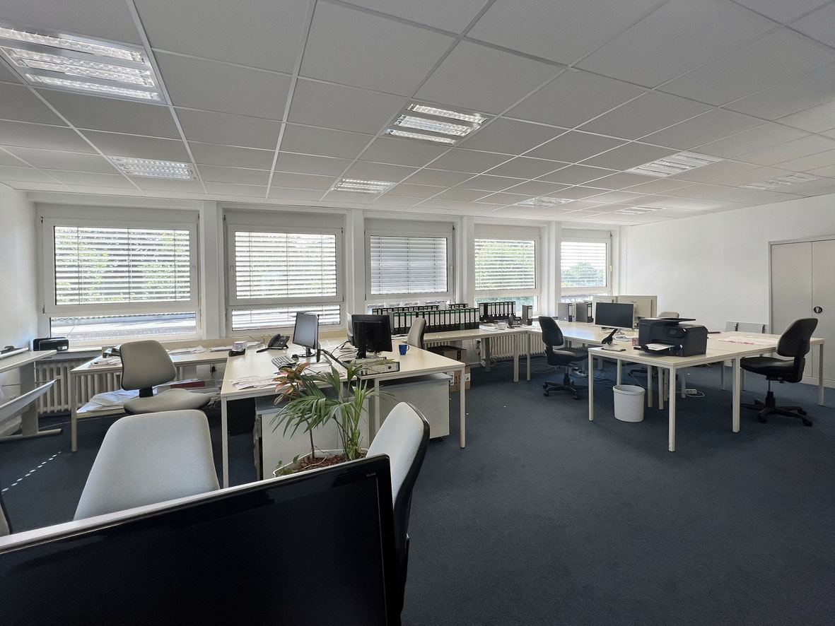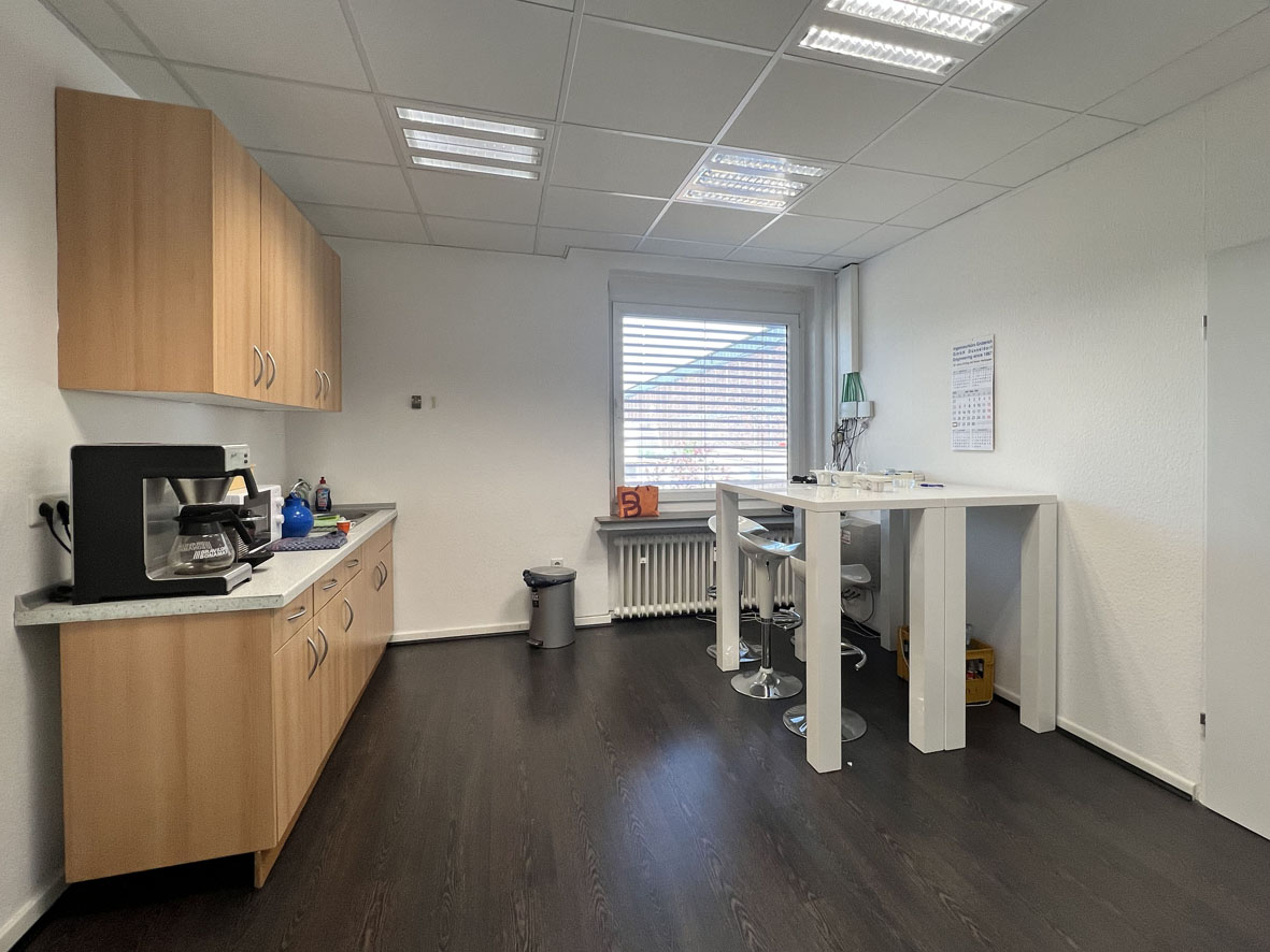 Die Bürofläche befindet sich im 1. Obergeschoss und besteht aus einem großen sowie zwei kleineren Büroräumen. Die separate Teeküche wird mit dem Nachbarmieter geteilt. Ein Aufzug ist nicht vorhanden.